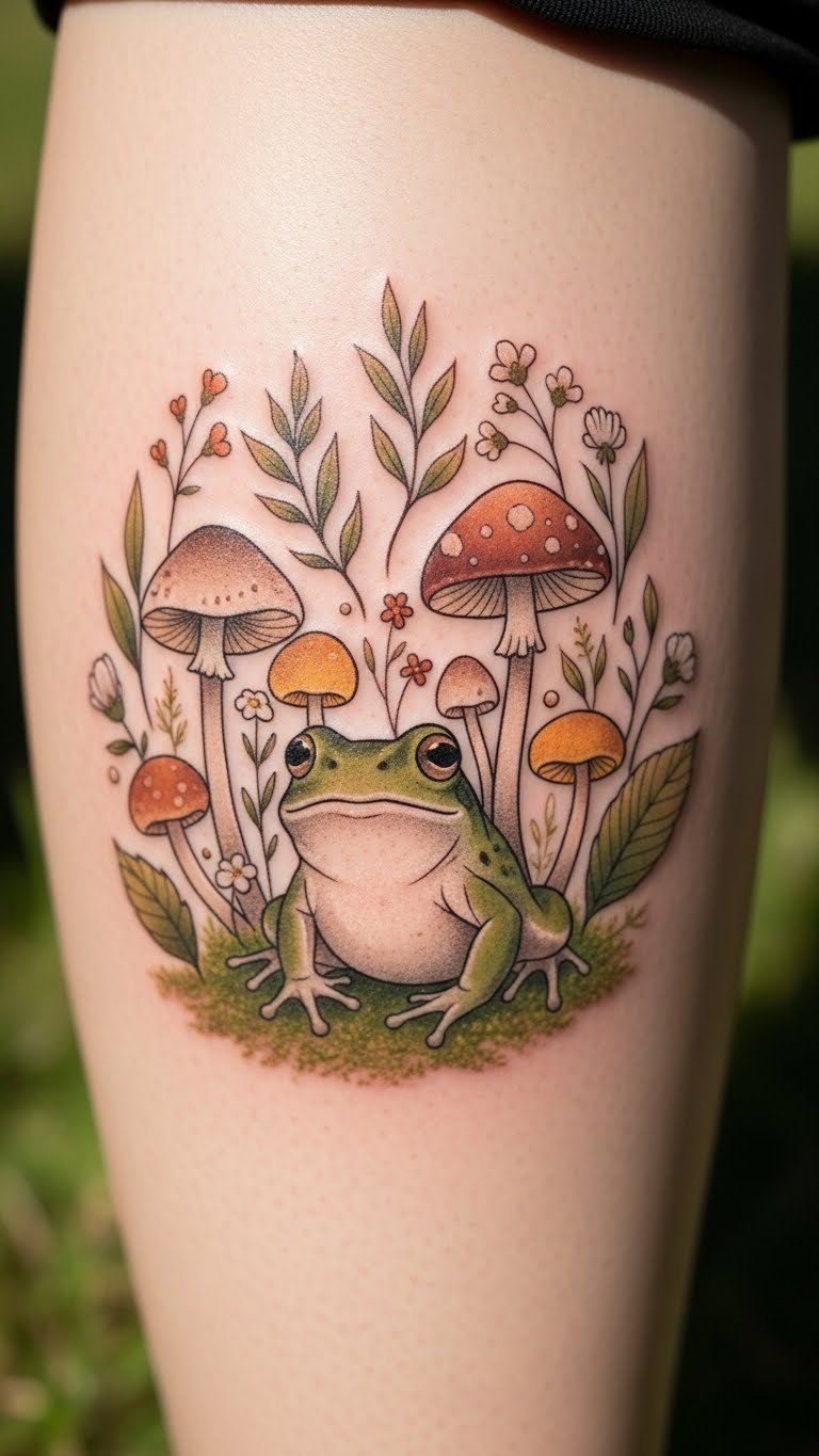 Bring rustic vibes to your frog tattoo. Imagine frogs with plants or mushrooms for that cozy feel. Sketch basic ideas at home using free apps on your phone. Add elements like flowers for a nature touch. Pick affordable ink colors from a craft kit, starting at $20. Place it on your arm for a subtle look. Try a temporary version first with stickers under $10. Real options at tattoo shops might cost $80. Blend styles with simple leaves around the frog. This way, you create a peaceful design without much hassle. Enjoy the process by drawing in your backyard for inspiration.