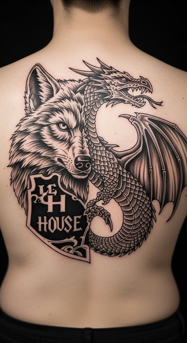 Think about a direwolf tattoo to show your Stark loyalty. This design features a fierce wolf ready for winter. Start with a sketch on paper using free apps like Canva. Pick a local artist who does simple line work for under $100. Go small on your arm for easy hiding at work. Bold the key: direwolf design. Try drawing it yourself with a pen and trace paper first. Keep costs low by avoiding colors; stick to black ink. This way, you get a cool tribute without much hassle. Add personal flair by mixing in a snowflake for “Winter is Coming.” Get feedback from friends before booking. Simple steps like these make it fun and affordable.