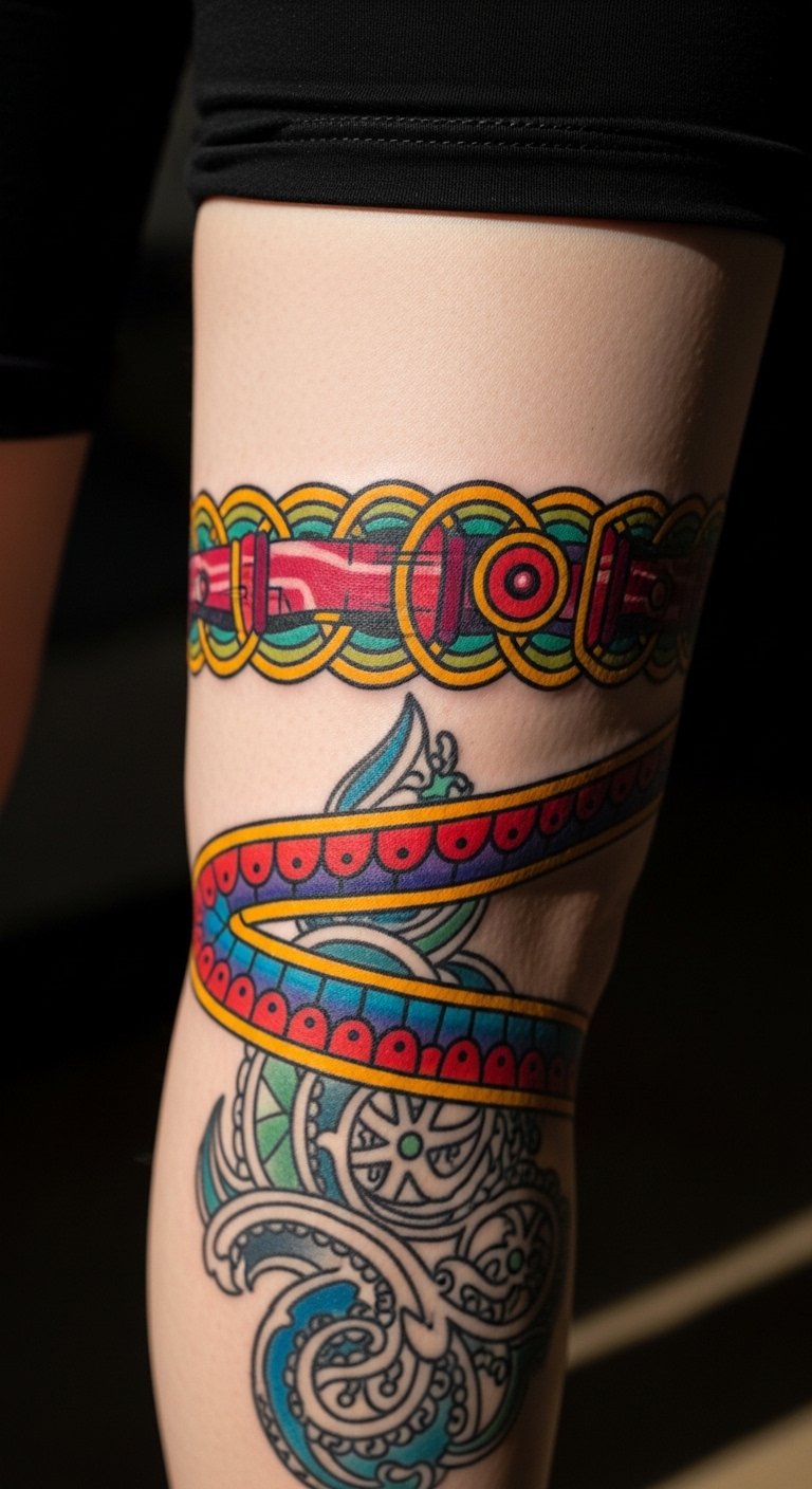 Neo-traditional garters mix old-school vibes with modern colors. See bright shades outlining the band. Plan with free coloring pages online. Practice shading techniques at home with pencils. Opt for fewer colors to save money. Neo-traditional garter stands out vividly. Action: check local events for discounted sessions. It’s a fun way to get colorful ink.