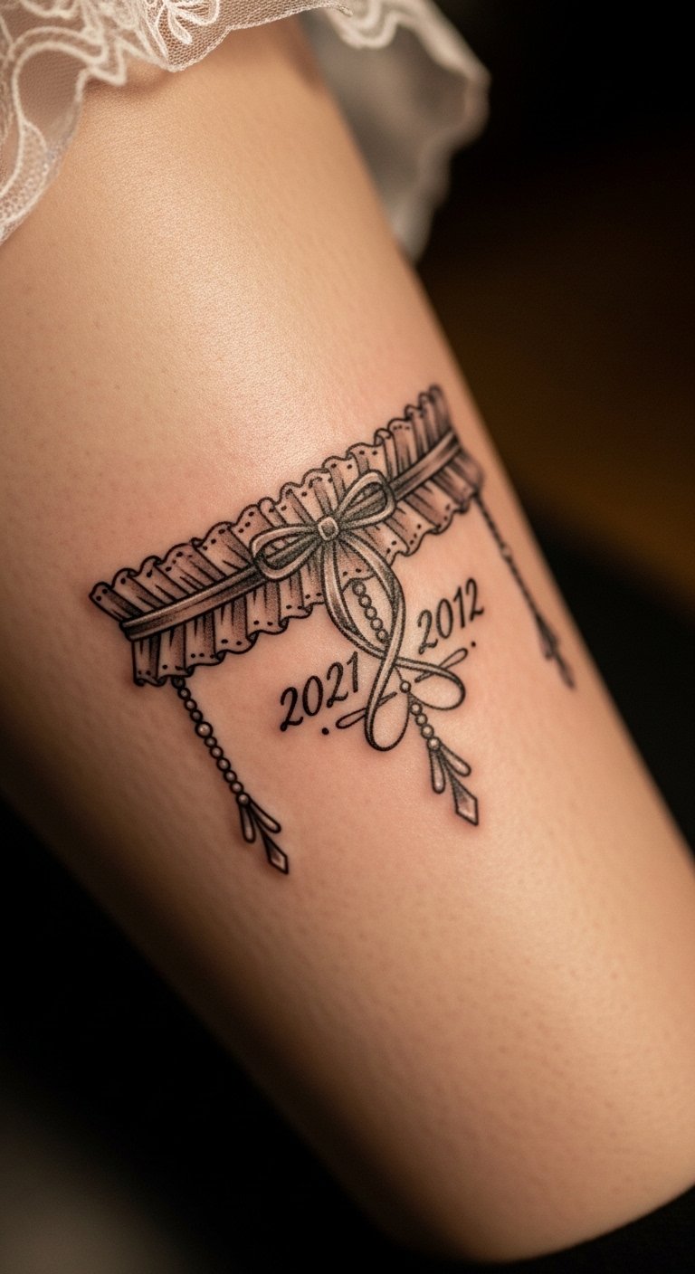 Thigh placement keeps garters secret yet meaningful. Envision the band just out of sight. Measure your thigh at home for free planning. Use washable markers for a temporary guide. Pick small designs to save money. Hidden thigh garter offers privacy. Simple step: consult with friends for cost-effective artists. It’s a smart, personal choice.