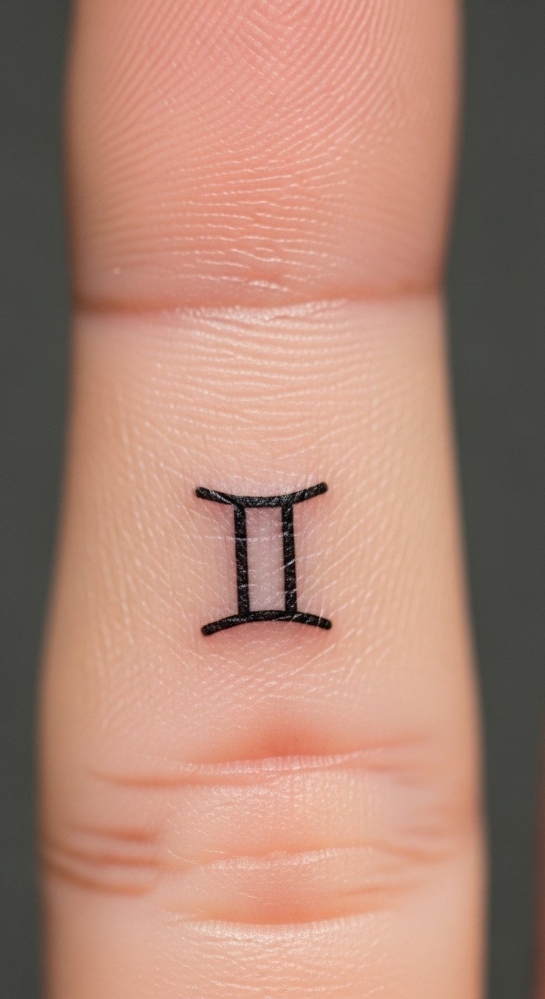 Small and subtle options keep Gemini tattoos discreet. A tiny glyph fits everyday life. Draw it small on paper to gauge size. Free mini templates are everywhere online. Expect to pay under $30. Add a dot for a quick twist. Tuck it behind your ear for privacy. Wearers use this to symbolize versatility quietly. Test with a temporary sticker first. Real folks love how it whispers personality. Keep it simple for easy sessions. This choice works for anyone starting out.