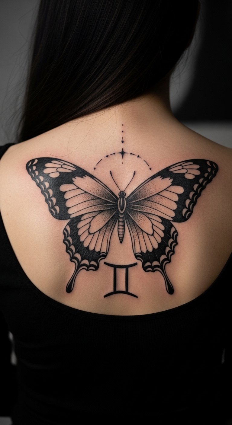 Spirit animals like butterflies add flair to Gemini tattoos. They represent subtle duality. Sketch a butterfly next to your glyph. Free animal stencils make it simple. Prices for this combo are around $50. Use nature photos for inspiration at home. Place it on your upper arm. People choose butterflies for their transformation tie. Try paper cutouts first. Real tattoos embody strength through wings. Keep designs light for balance. This element personalizes your ink.