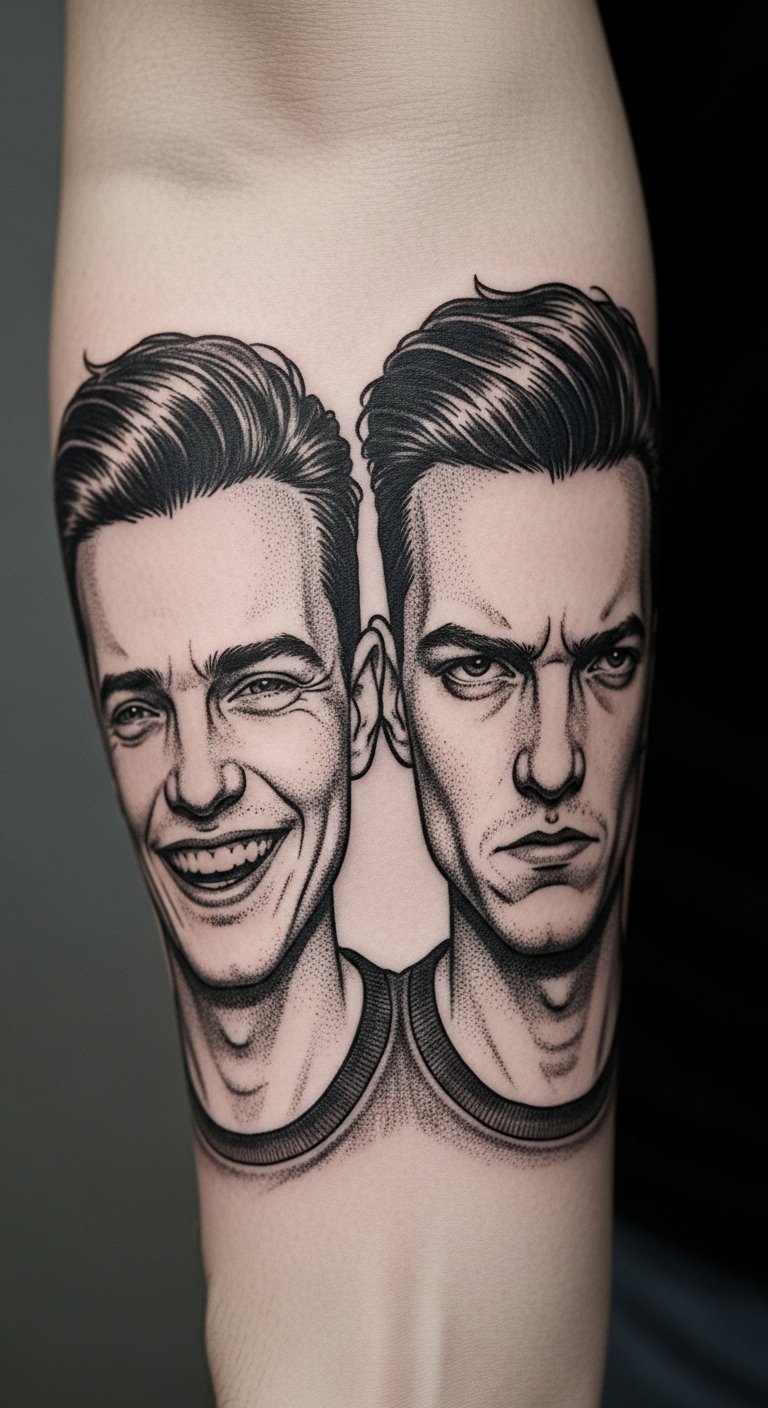 Think about twin figures for a tattoo that shows your inner contrasts. Twin designs work great for Gemini folks who feel pulled in different directions. Start with a basic sketch of two faces on paper. Use free online apps to mirror images and play with ideas. Go for black ink to keep costs low—many artists charge less for simple lines. Add a personal touch by including elements like a small star next to one twin. This setup lets you represent emotions side by side. Pick an upper arm spot for easy hiding or showing. A local tattoo shop might offer deals under $50 for small pieces. Try drawing it yourself with a marker first to see how it feels. These tattoos remind you of balance every day. Keep the design symmetric for a clean look. Mix in colors if you want, but stick to one or two shades to save money. Real people love this for its emotional depth.