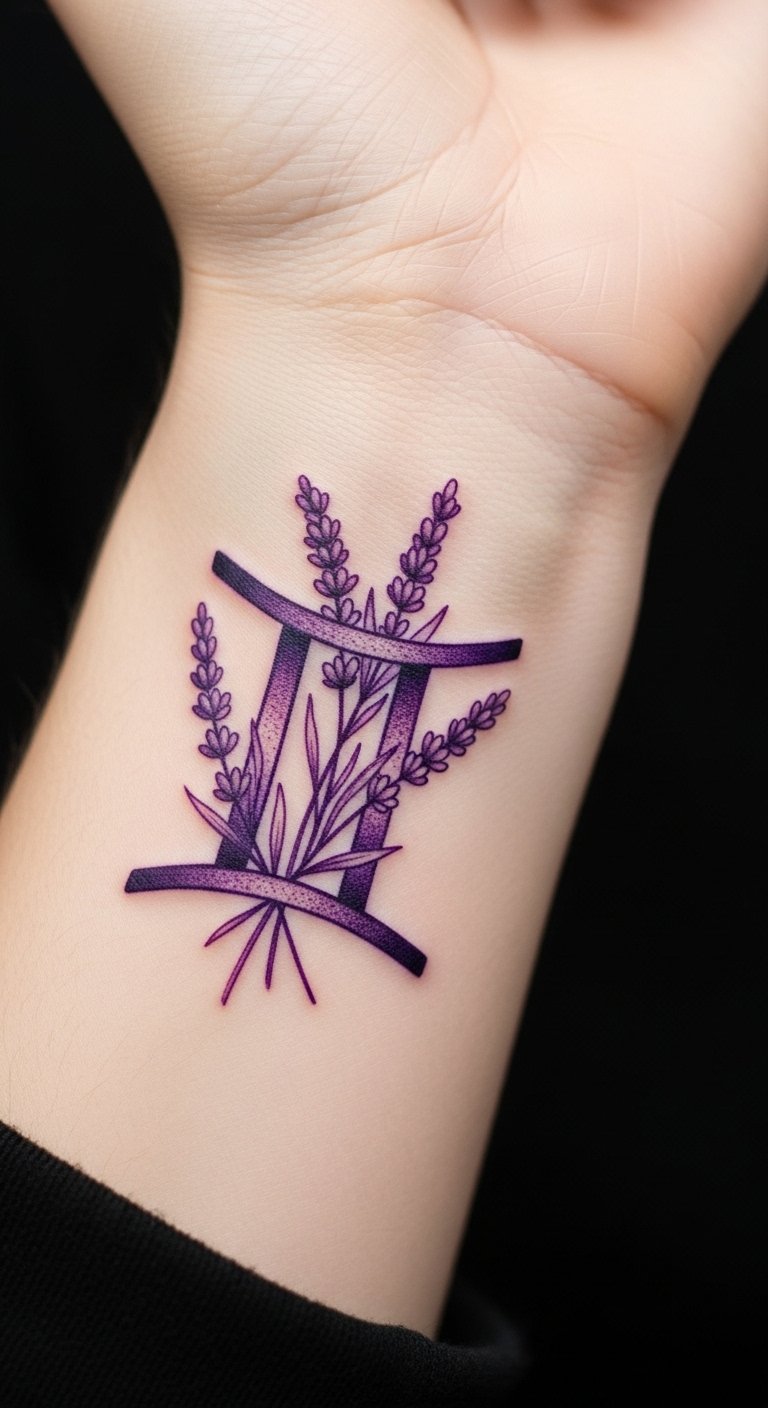 Lavender accents bring calm to Gemini tattoos. Sprigs around your symbol promote harmony. Draw flowers simply. Free plant images online help. This addition costs $45. Grow lavender for real inspiration. Put it on your wrist. People pick this for optimism vibes. Try pressing flowers for DIY. Real tattoos symbolize rebirth nicely. Keep accents minimal. This touch adds warmth.