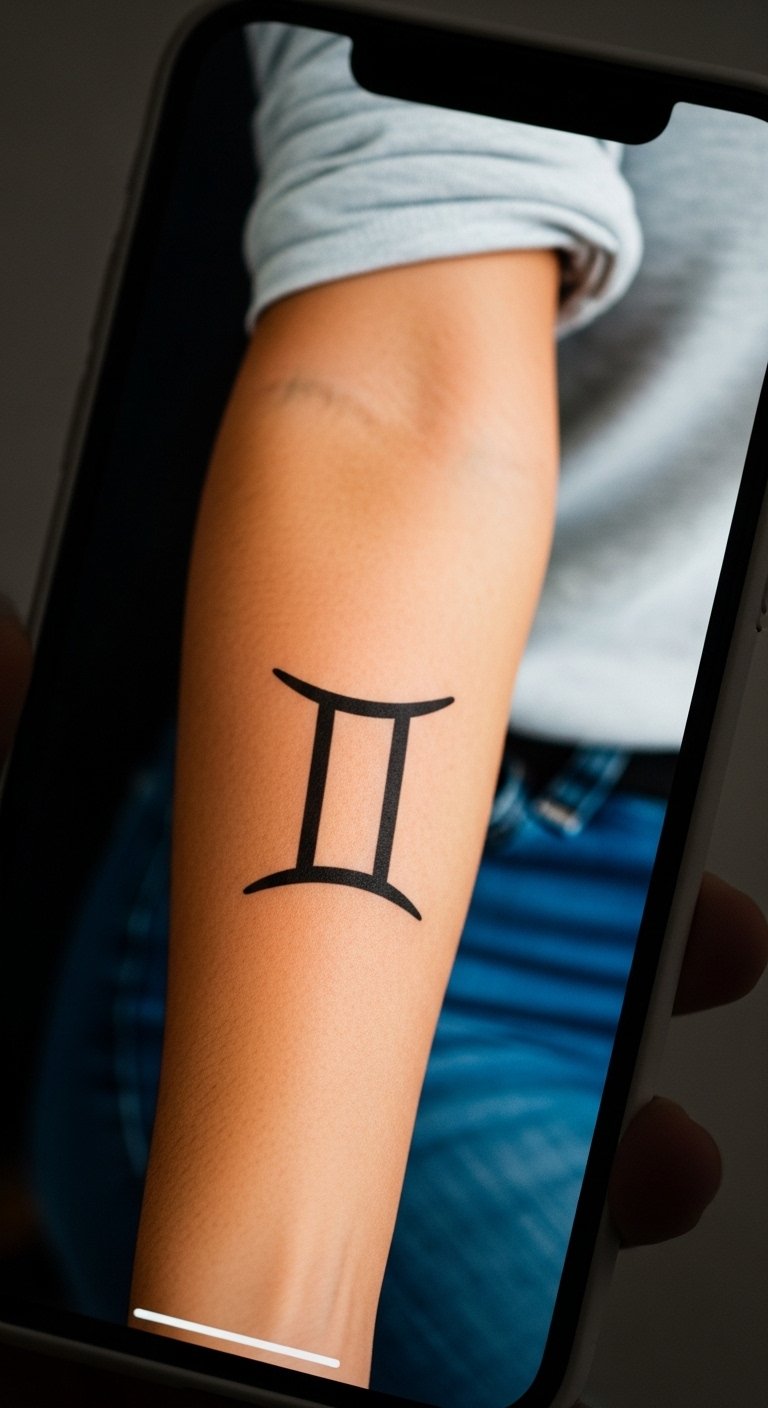 The Gemini glyph offers a straightforward way to wear your sign. Two parallel lines can mean so much with little effort. Draw it out on your skin with a washable pen to test spots. Online templates are free and easy to find. Opt for black ink at a budget studio—prices often start at $30. Add a twist like a tiny dot for extra flair without extra cost. This design fits anywhere, like your wrist for daily views. Folks use it to show adaptability in their lives. Combine it with a quick DIY session using henna for practice. Real examples show how this glyph highlights communication skills. Keep lines straight and simple for the best results. Many get this as their first tattoo because it’s quick and affordable. Use phone apps to preview it on your body before deciding.