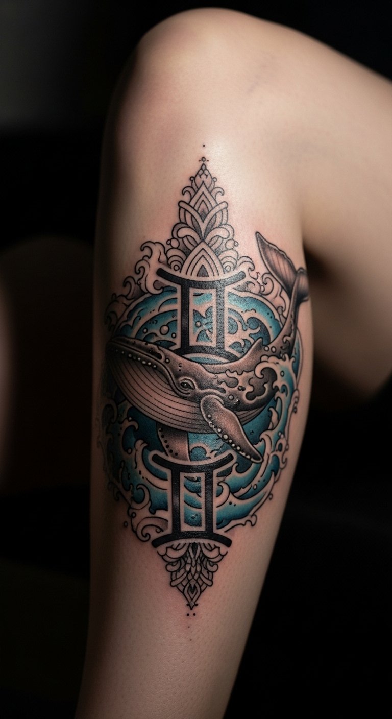 Whales bring strength to Gemini tattoos. They symbolize calmness. Draw a simple whale. Free animal resources aid. Costs around $50. Link to your glyph. Place on your leg. People choose it for traits. Sculpt with clay. Real tattoos add emotion. Keep it streamlined. This element grounds you.