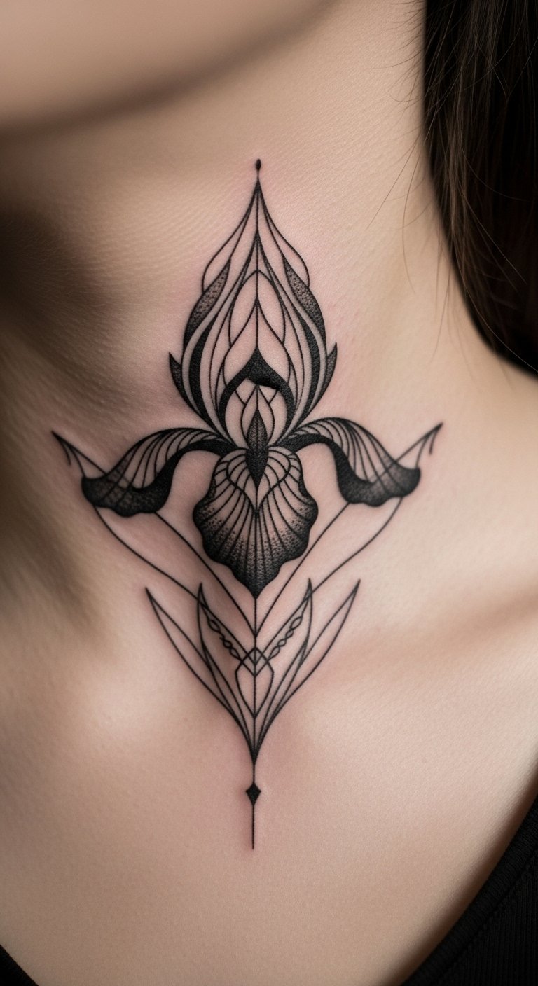An elegant geometric iris tattoo graces your neck. Trace elegant curves on paper. A basic kit costs $1. It makes planning easy. Practice with erasable ink pens. They cost pennies. Connect with elegant tattoo artists. Show your vision. Keep it on your neck for a touch of class. Add fine details for meaning. Go for clean lines to keep expenses down. You might save $25. Use it as subtle art. It’s suitable for formal events.
