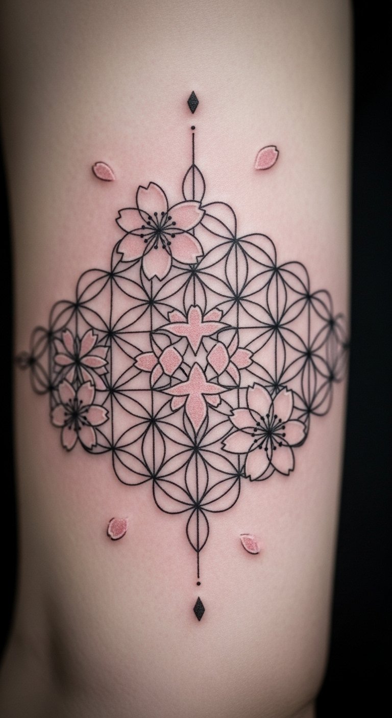 A zen geometric sakura tattoo calms your arm. Outline calm lines quietly. Use zen tools at home. Peaceful templates are free. Practice with zen temporaries for $3. They bring tranquility. Look for zen artists. Share calm ideas. Keep it on your arm for peace. Add zen details. Choose mindful styles to save money. This cuts $25. Let it offer serenity. It’s perfect for relaxation.