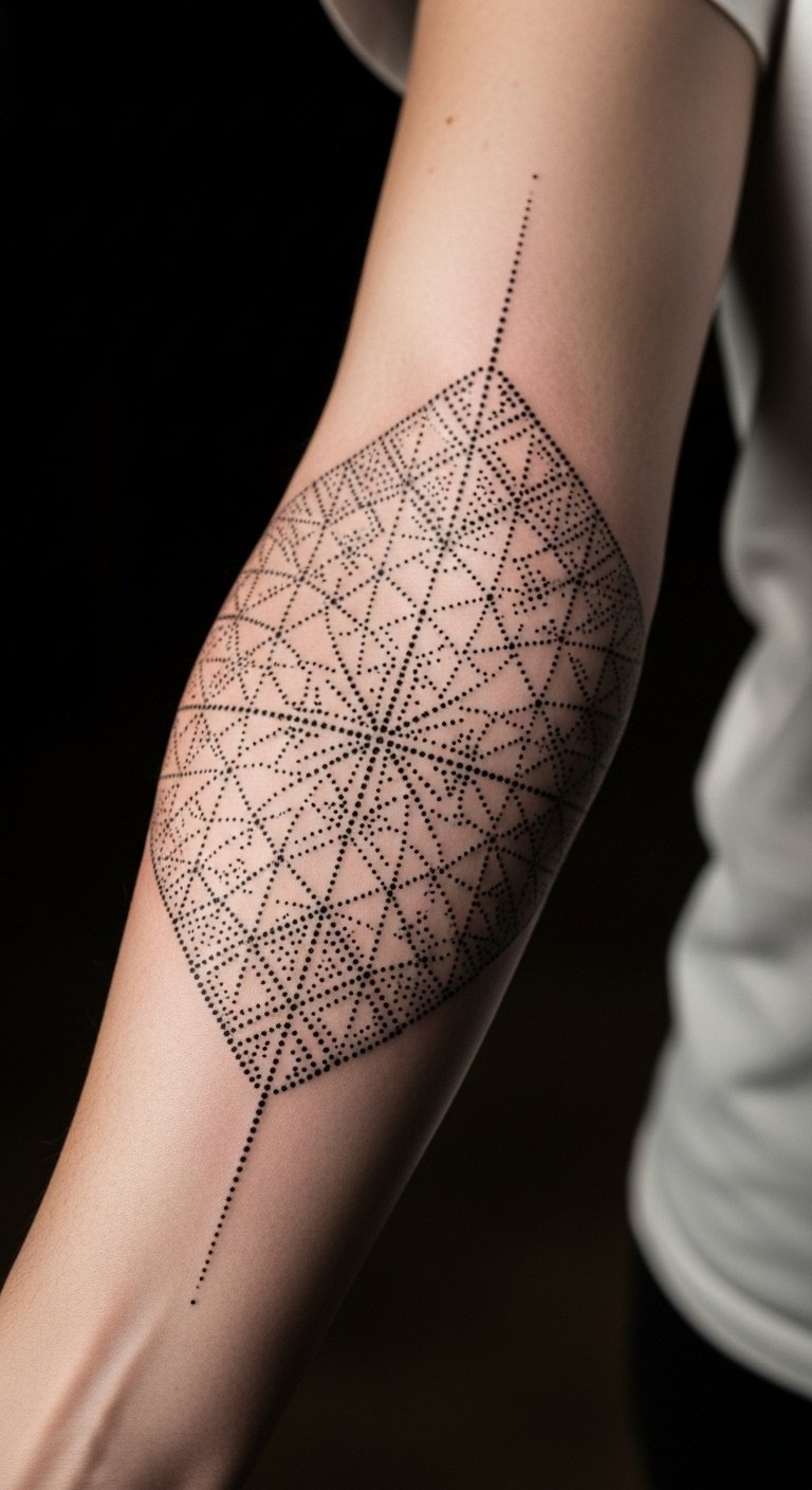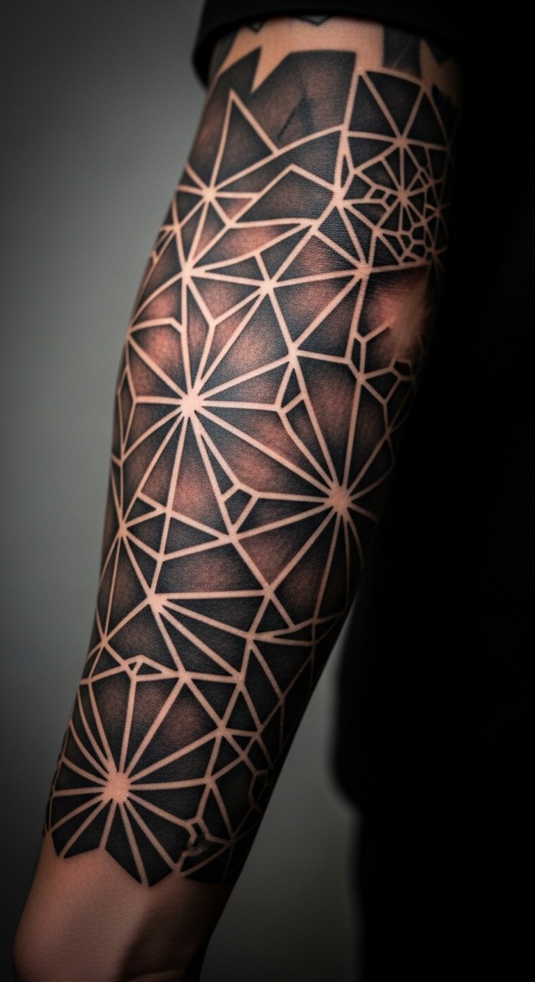 Overlapping polygon grids layer polygons for depth. Draw polygons on grid paper. Overlap for patterns. Place across your sleeve. Look for grid-savvy artists. Use black for impact. Start with a grid section. Check for bundle offers. Outline with string on your arm. This tests the look. Keep it straightforward. Work with the artist on overlaps.