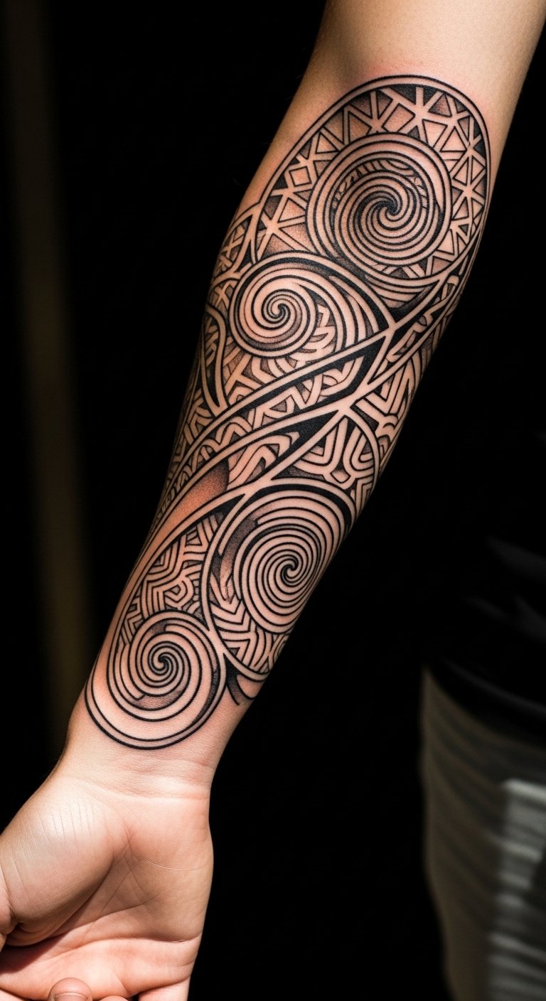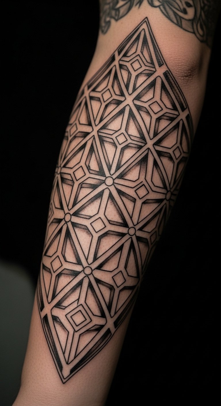 Layered square patterns stack boxes for a bold sleeve. Practice with square grids on plain sheets. Overlap them for interest. Put on your inner arm for subtlety. Look for artists who layer shapes well. Stick to black for a stark effect. Choose a mini version for affordability. Check classifieds for low-cost options. Use grid paper to plan on your skin. This makes adjustments easy. Keep it practical for daily use. Collaborate with the artist on layers.