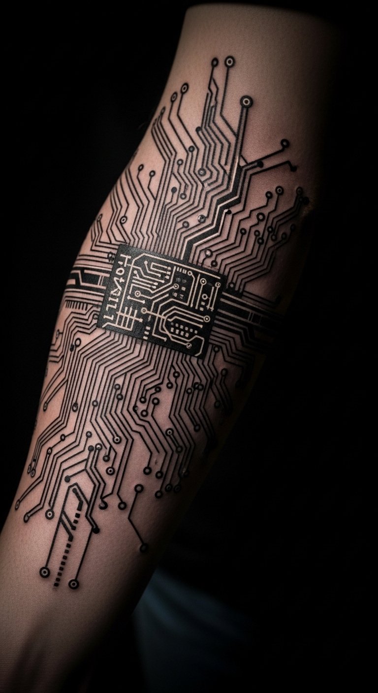 Imagine a circuit board tattoo wrapping your arm like tech on skin. Sketch it out at home with a ruler and graph paper for straight lines. Add elements like squares and wires one at a time. Download free tattoo design apps for quick edits. Pick up temporary versions online for less than $5 to see how it fits. Find a local artist through social reviews for sharp details. Schedule small sessions to fit your budget. Mix in personal icons, such as a star, for meaning. Pair it with simple tees to show it off daily. Use cheap stickers as practice before committing. After getting it, protect with basic bandages from your kit. This approach keeps things easy and affordable. Try drawing on yourself with washable pens to visualize. It’s a straightforward way to update your look.
