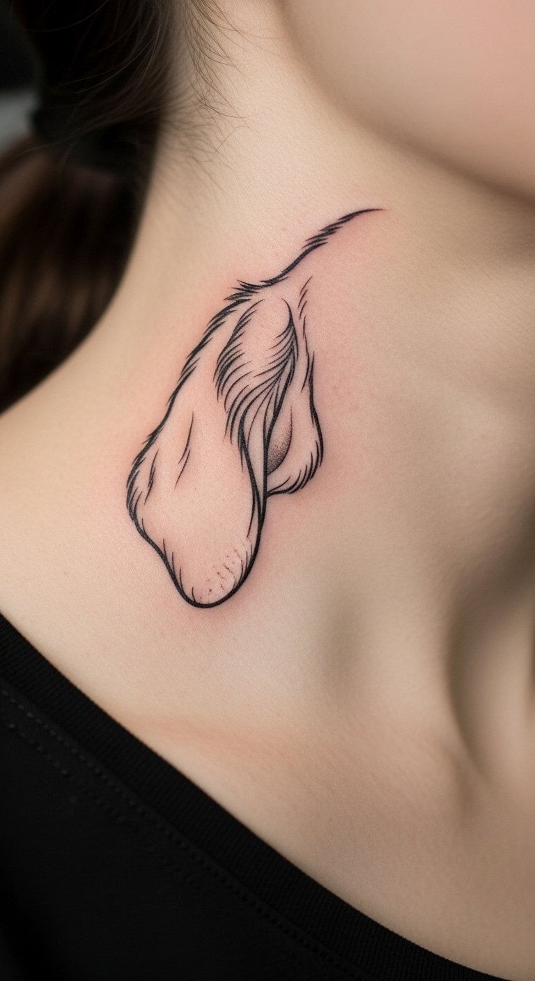 Focus on those floppy ears in a clean outline. It symbolizes the breed’s charm. Sketch it quickly on paper with a marker. Use free drawing apps on your phone. Add a tiny heart for extra meaning. This keeps costs low. Place it on your neck for a hidden spot. Test with a henna kit at home first—it’s budget-friendly. You’ll appreciate the subtle nod to loyalty. Keep it simple for easy touch-ups.