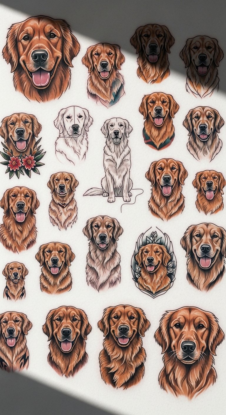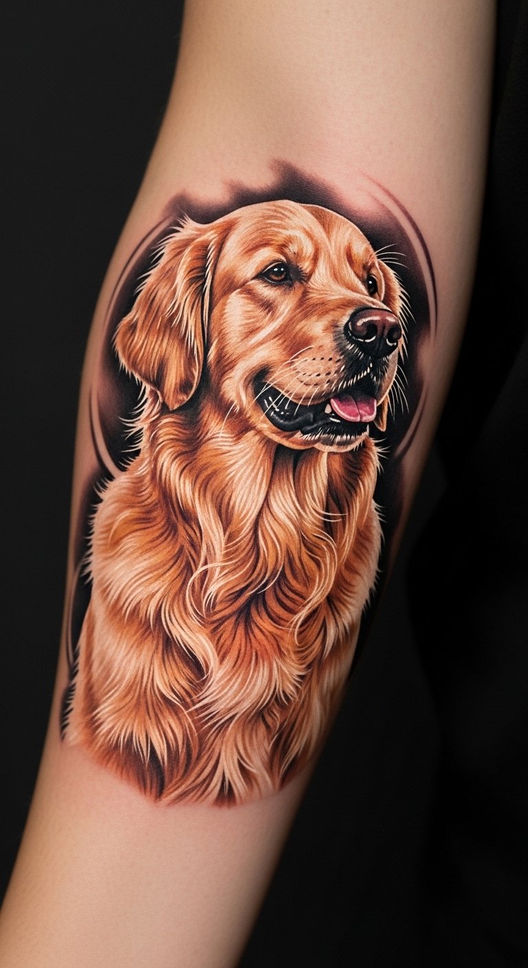 Golden Retriever tattoos embody the pure bond of loyalty and love that this breed represents. If you’re a dog lover seeking a meaningful way to celebrate your pet, these designs turn cherished memories into wearable art. From simple sketches to vibrant portraits, this list showcases 25 stunning options that inspire and connect.
