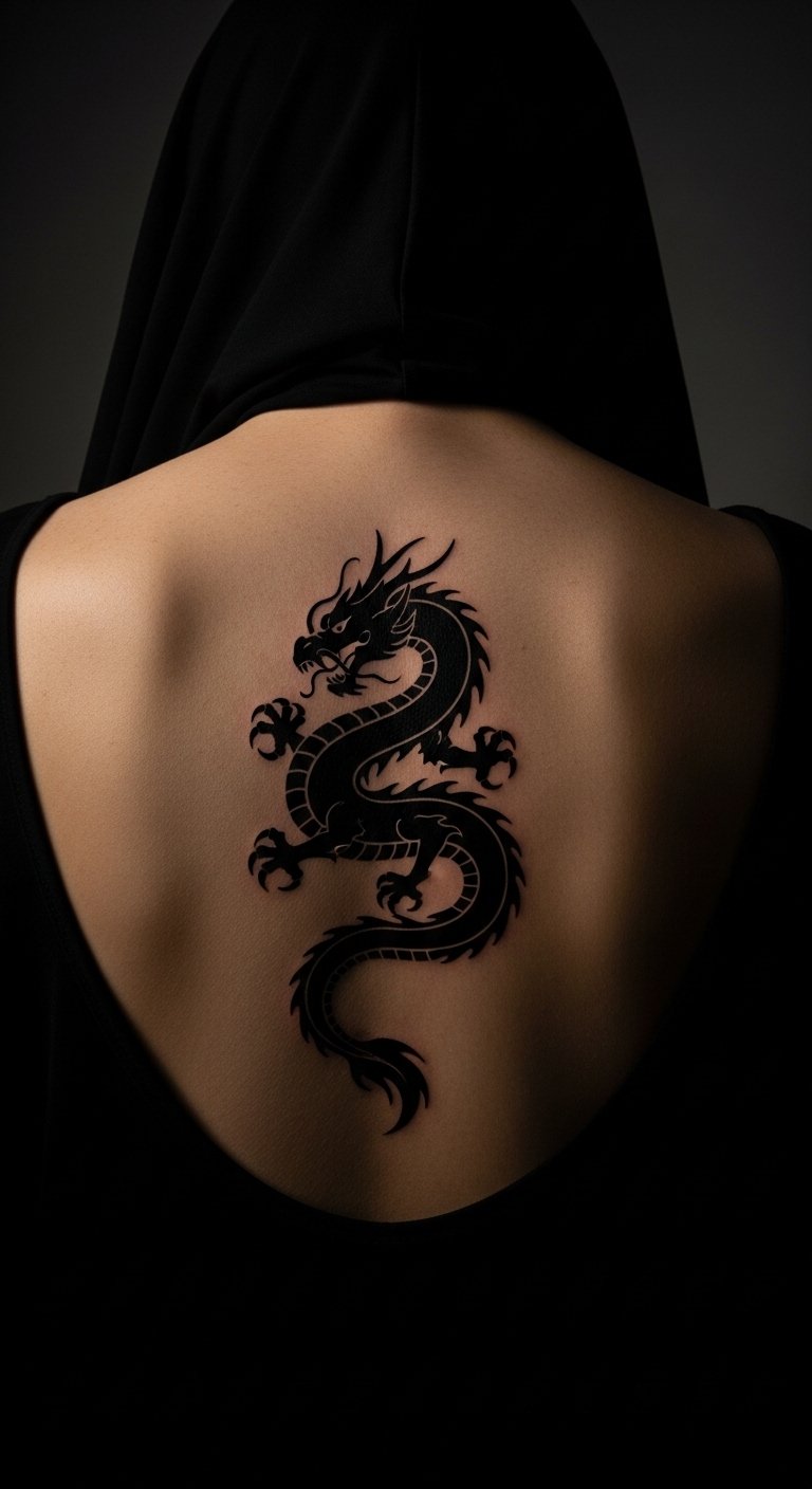 A mythical creature silhouette brings fantasy to life. Think a dragon outline. Place it on your back affordably. Sketch creatures at home. Look for fantasy sales. Use solid black for savings. Try silhouette stencils. Wear with adventure gear. Add wings for story. Keep it to one session. This design sparks imagination. Use apps to preview. Create myths on a budget.