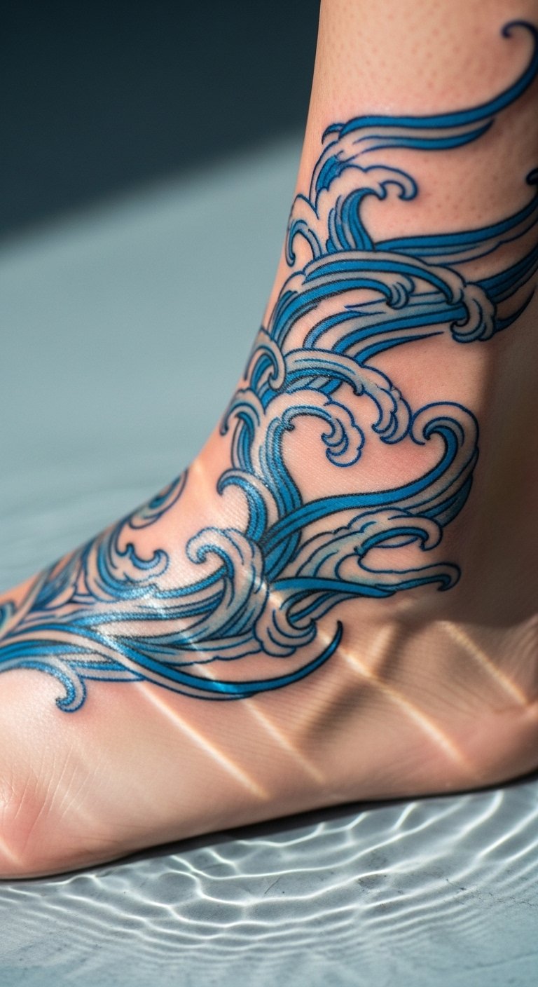 Wave motion lines create a sense of flow on your body. They ripple like the ocean. Start on your ankle. Practice with curved lines at home. Check for wave deals. Stick to blue tones. Test with wave drawings. Match with beach wear. Add ocean elements. The art applies smoothly. This design moves with you. Use apps for waves. Ride the trend cheap.