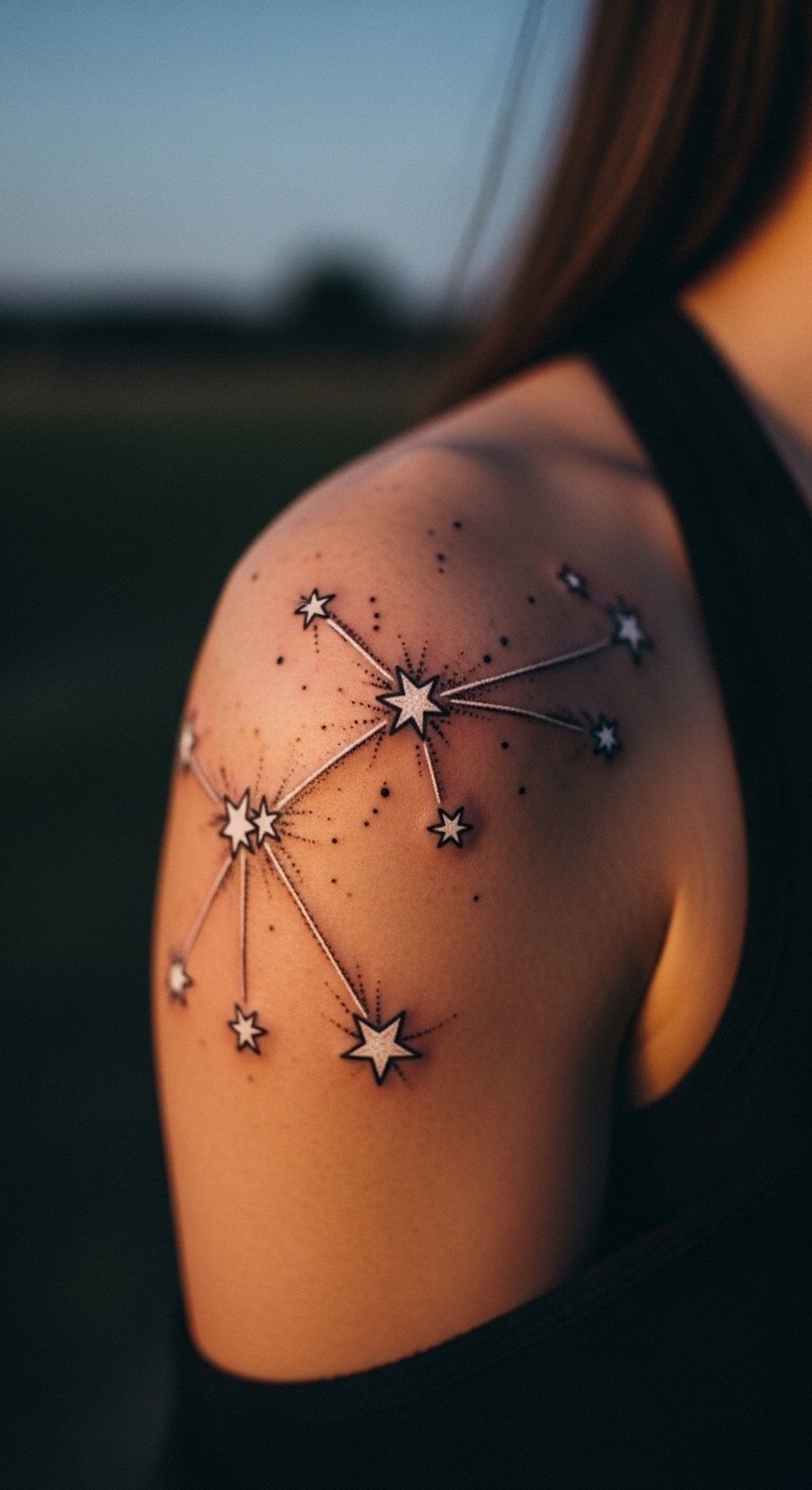 A star map constellation tattoo maps your night sky. It’s personal and vast. Try a shoulder design. Draw stars on paper. Look for celestial discounts. Use white ink options. Experiment with star stickers. Wear with night skies. Include your birth stars. Sessions shine bright. This tattoo lights your path. Visualize with apps. Star your journey affordably.