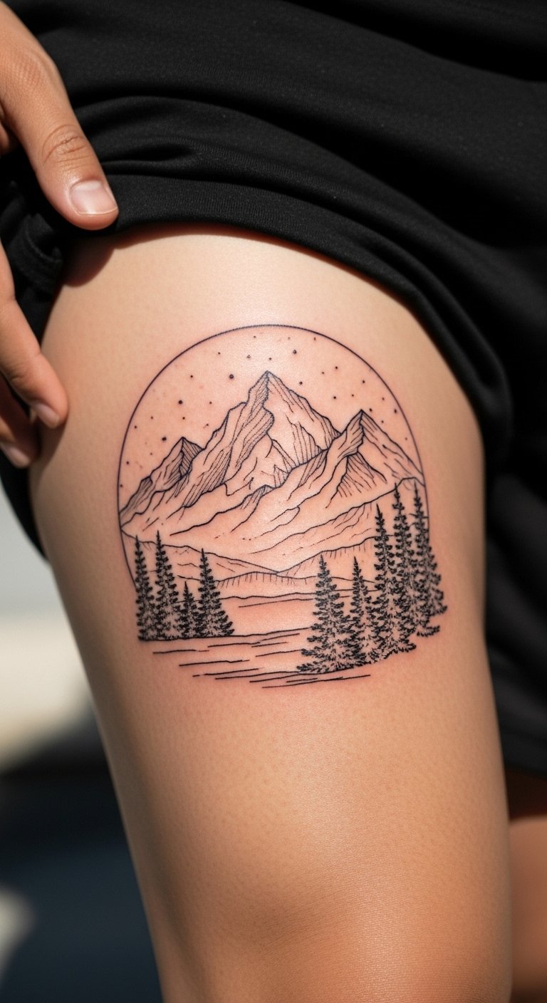A nature landscape scene brings outdoors in. Mountains and trees in ink. Go for a thigh design. Sketch scenes on paper. Look for nature offers. Use detailed lines. Try landscape prints. Wear with outdoor gear. Add a sunset glow. The art feels fresh. This tattoo natures your style. Visualize with apps. Scene your world cheap.