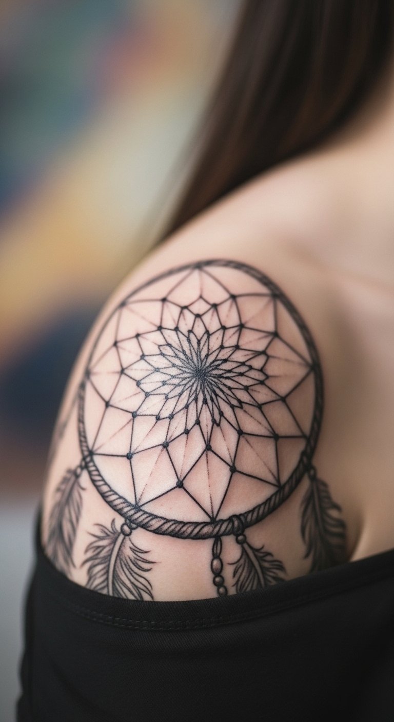 A dreamcatcher web pattern catches your dreams. Webs that protect. Go for a shoulder design. Sketch webs simply. Look for dream deals. Choose detailed lines. Use web templates. Match with boho clothes. Add a feather touch. The process is dreamy. This tattoo patterns your nights. Visualize with apps. Catch affordably.