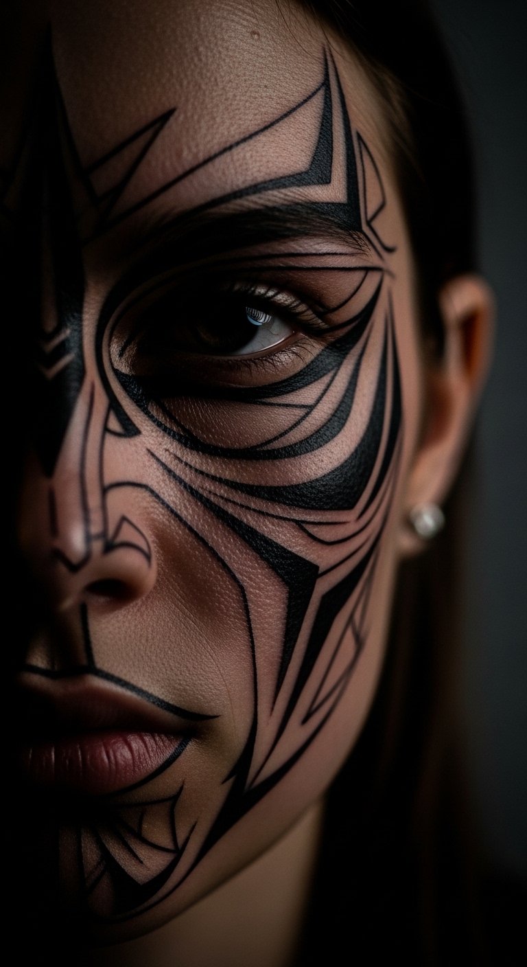 An abstract mask face hides and reveals in art. Masks with patterns. Go for a face design. Draw masks easily. Look for mask offers. Choose bold patterns. Try mask cutouts. Show with mysterious outfits. Include an eye hole. Sessions mask creativity. This tattoo faces your style. Visualize with apps. Mask affordably.