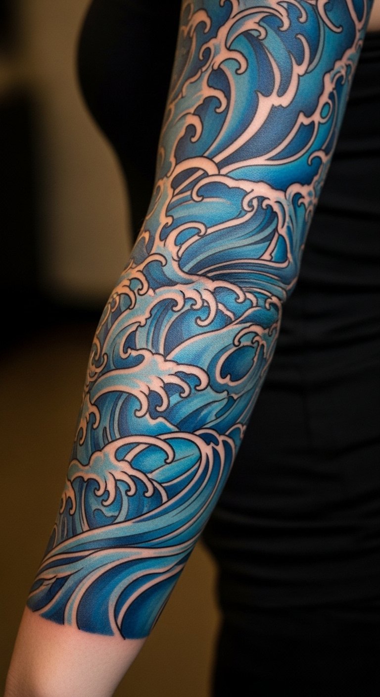 Waves crash with a sense of adventure. Imagine them rolling along. Draw wave shapes on paper. Add sea creatures if you like. Use phone tools to test placement. This keeps costs low. Opt for fewer colors. Keep the area dry during recovery. It’s perfect for a free-spirited you.