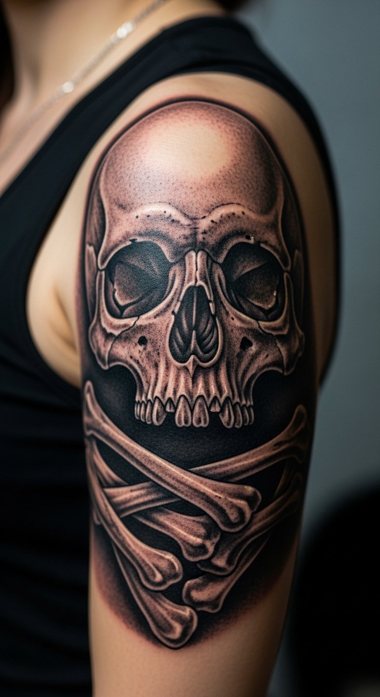 Skulls add an edgy touch. See one detailed on your arm. Practice simple skull drawings. Make it personal with extras. Free apps aid in previewing. Choose black ink for savings. Heal with basic lotions. This design stands out yet conceals easily.