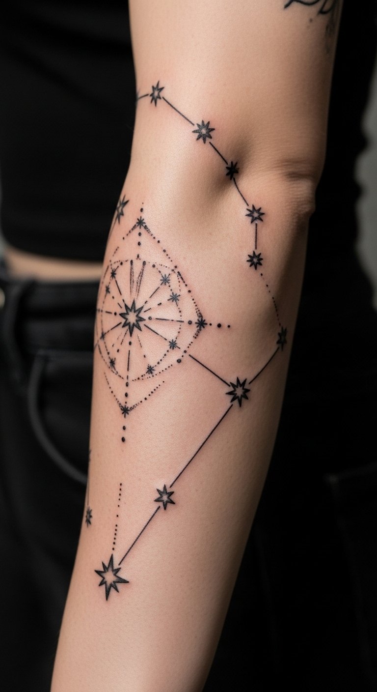 Stars map your dreams on skin. Think of them sparkling. Draw constellations from memory. Link them to your aspirations. Apps help you arrange them cheaply. Keep it simple for affordability. Protect with light clothing. This design sparks conversation.