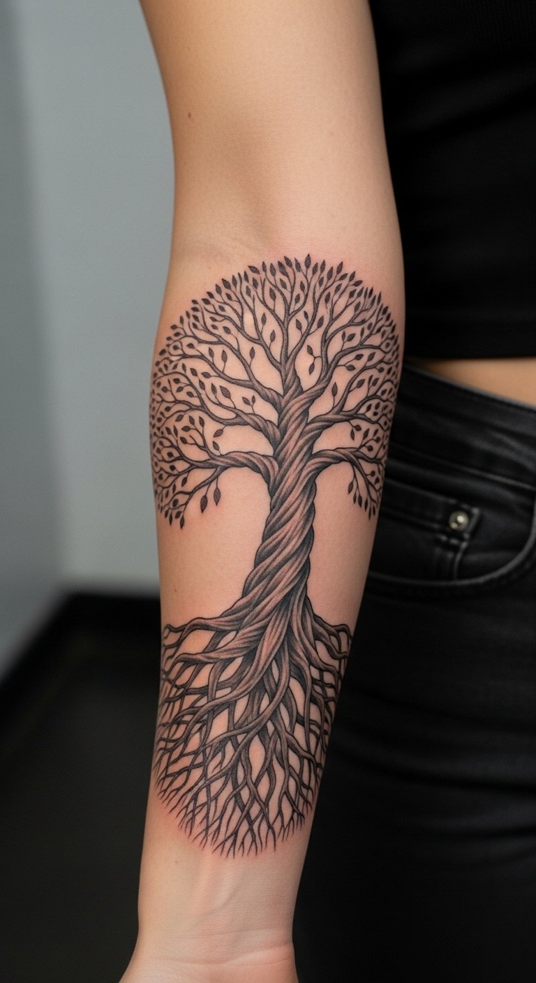 Trees grow with roots deep. Imagine one on your arm. Sketch it quickly. Add your twists. Free apps assist. Choose essentials. Heal with ease. This design grounds you.