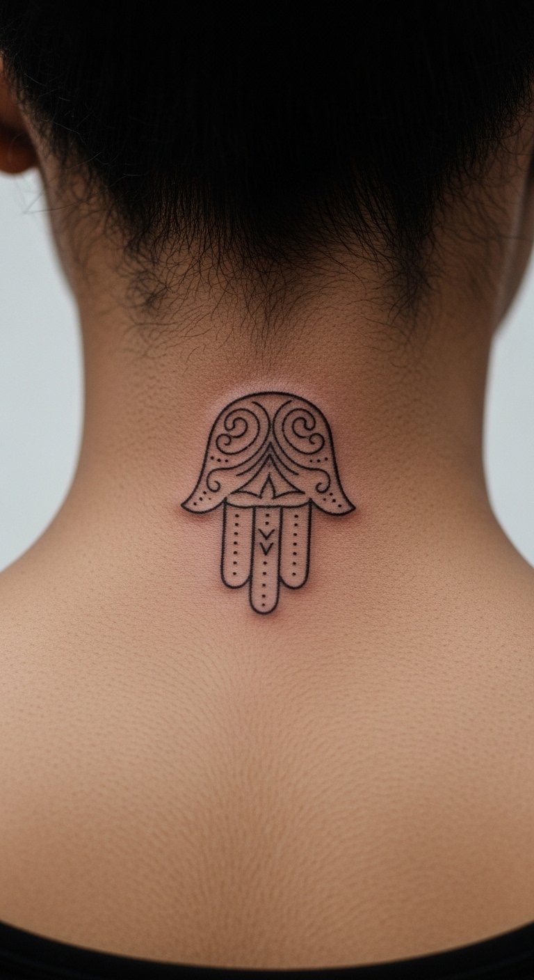 Back of the Neck Hamsa for Subtle Guard