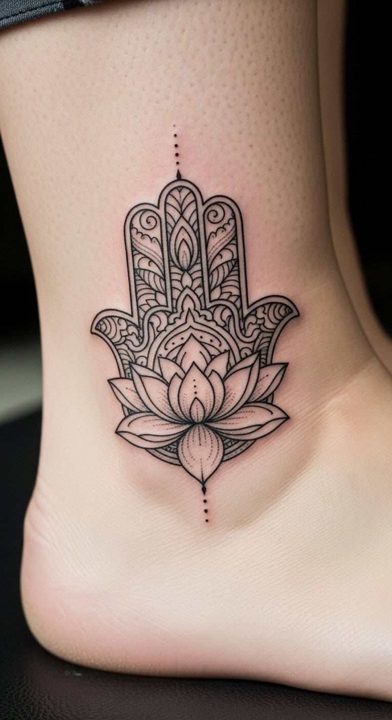 Fuse Hamsa with symbols like lotuses. It creates a global guard. A mix of cultures. Draw fusions online. Free options exist. Around $100. Choose one fusion. Practice mixes. Steps: pick symbols, combine, ink. This design protects wide. Personalize. Try.