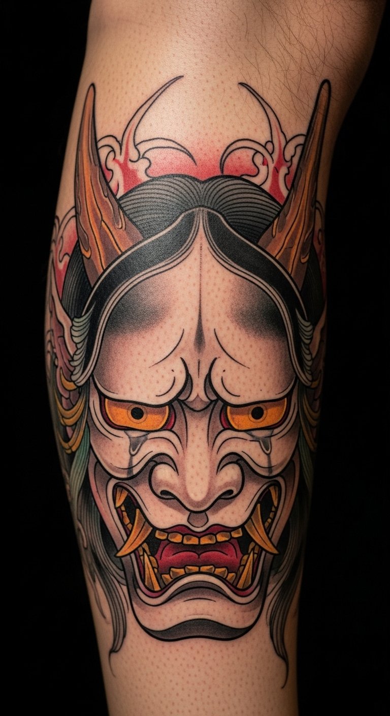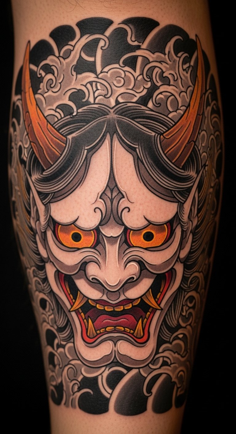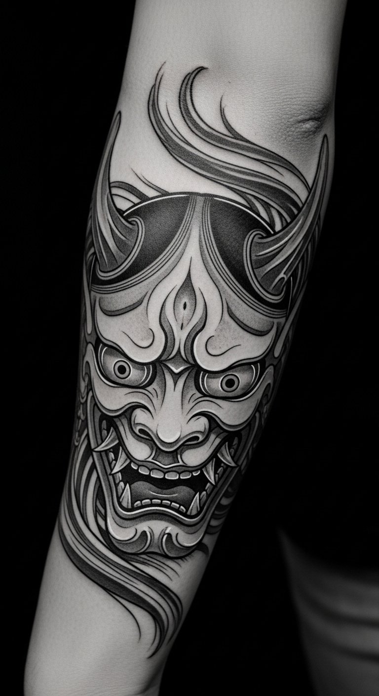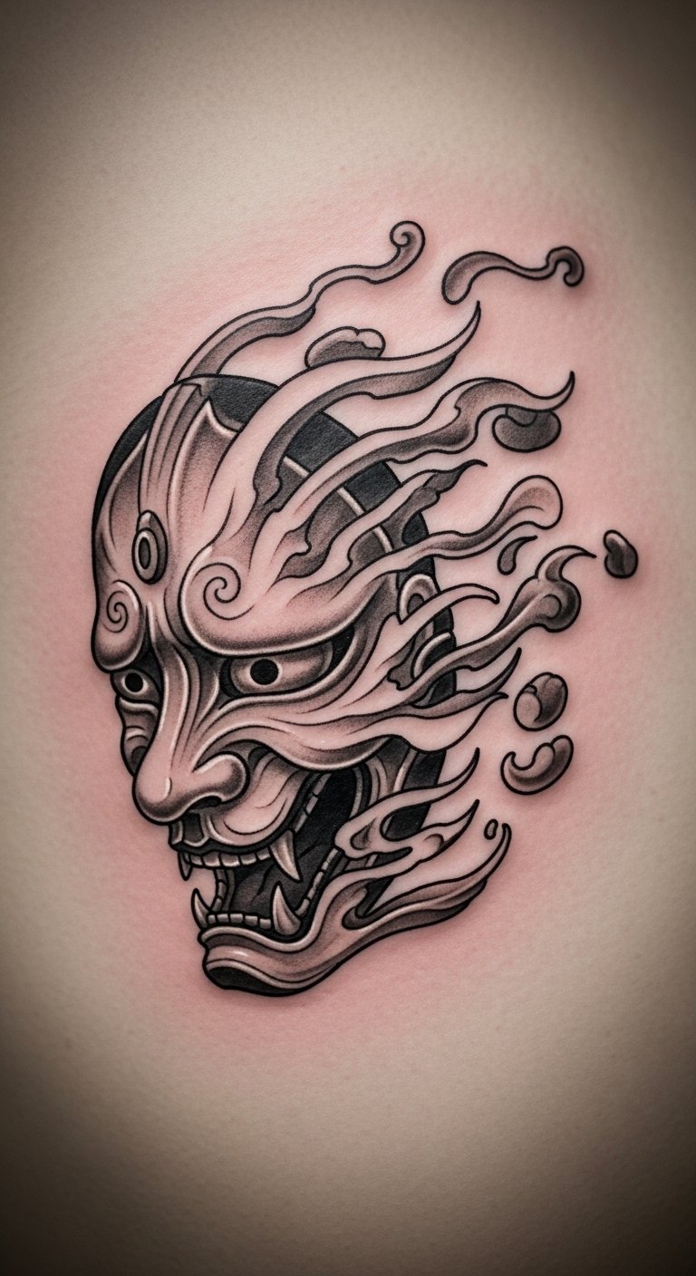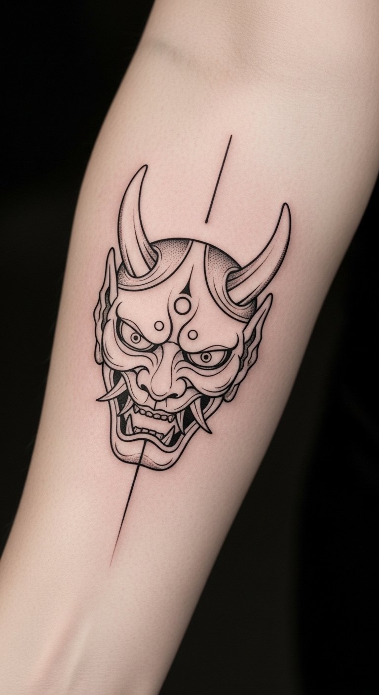 Minimalist lines make a Hannya sleek. Just the outline keeps it modern. Go small for under $80. Sketch it yourself with a pen on paper. Transfer to skin with tape. Easy DIY fun. Bold key lines for clarity. Place it on visible spots. Look for student artist discounts. This design fits busy routines.