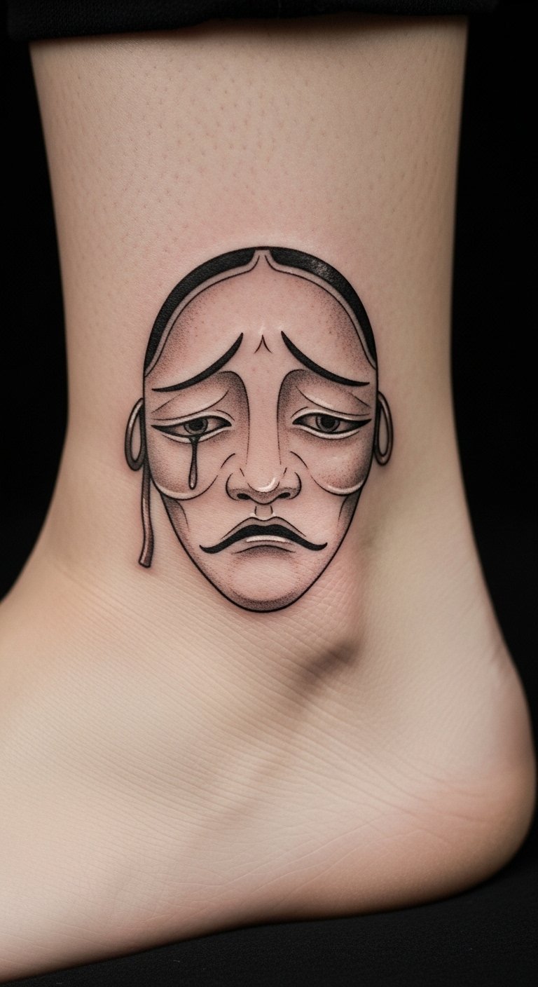 A sad mask adds depth to Hannya. Downward lines show sorrow. Keep costs at $70. Sketch sad faces at home. Use simple pencils. Quick idea. Bold the mouth. Ankle spots are easy to hide. Look for beginner artist rates. This design shares feelings.