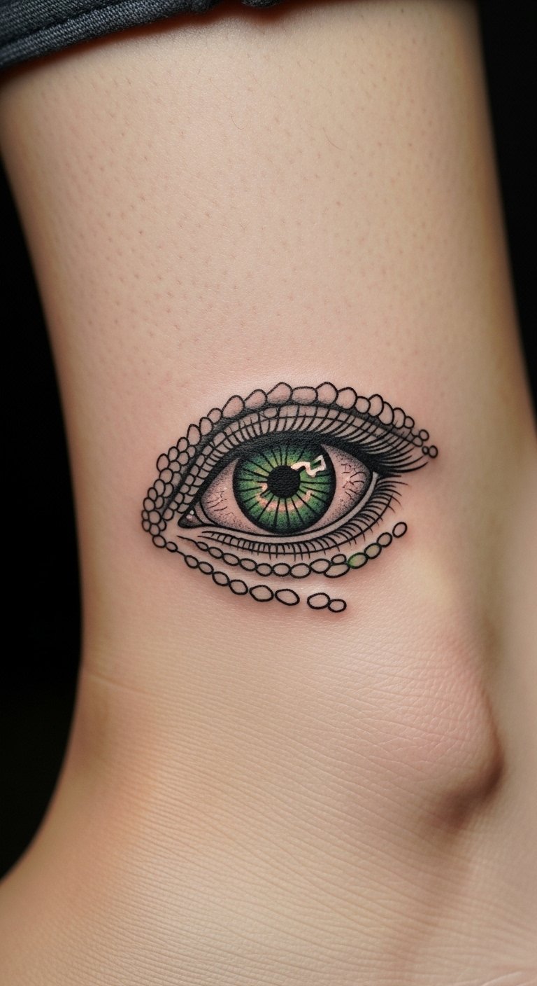 Go minimalist with a Basilisk eye for mystery. It’s just an eye shape. Put it on your ankle for secrecy. Save by drawing eyes freehand. Use phone apps. Try eye stickers. Check for flash options. Bold: phone apps. Add a tear drop. Tip: Sketch the eye, place temporarily, and choose. It’s your hidden danger.