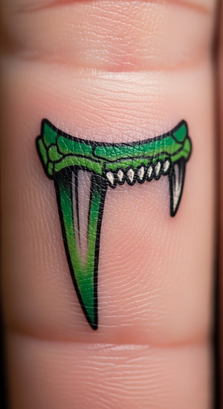 Tip your finger with a Basilisk fang for edge. It’s sharp and pointed. Put it where you point. Save by drawing fangs simply. Use free shapes online. Try a nail sticker. Check for small ink options. Bold: free shapes online. Add venom drops. Tip: Sketch the point, test on nail, and go. It’s your fierce mark.