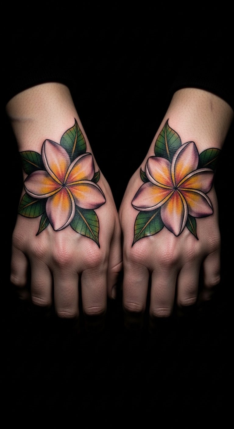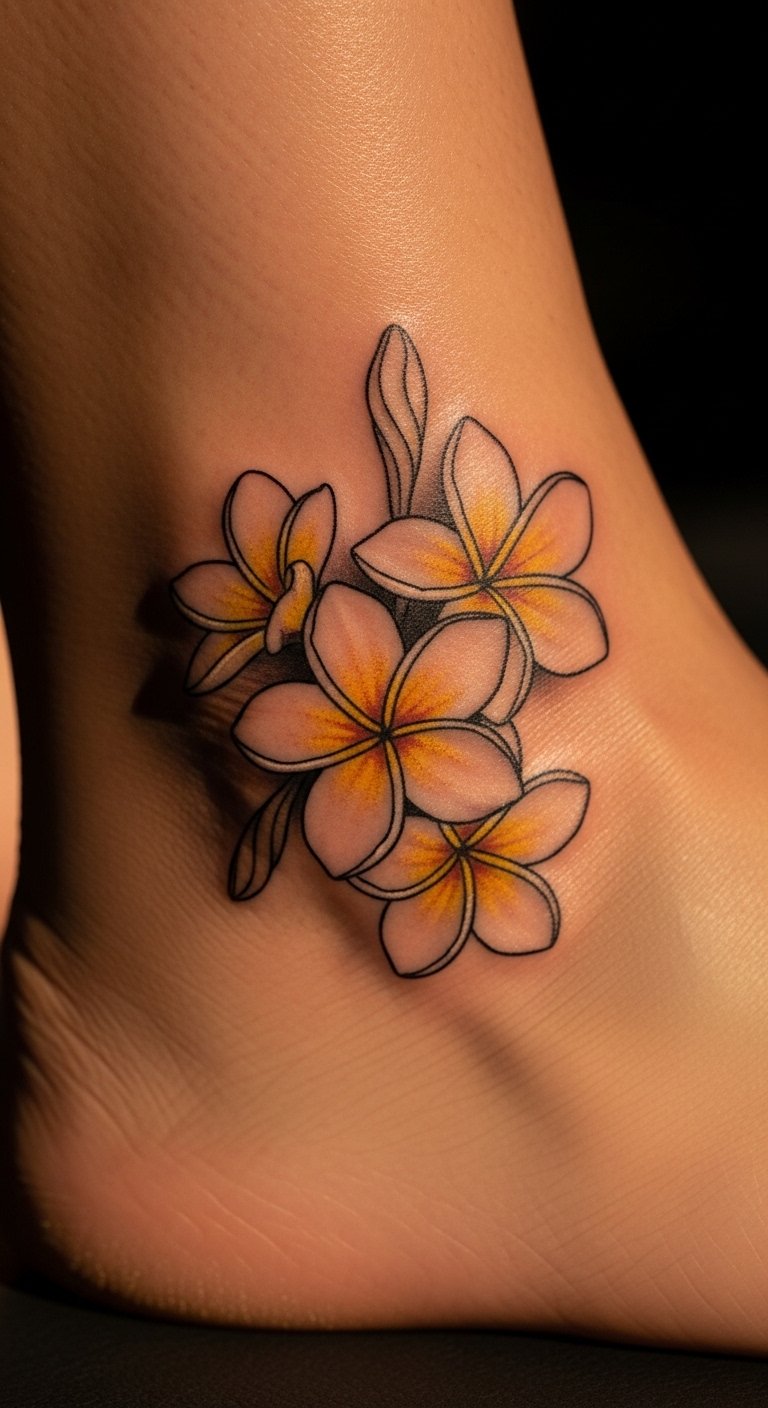 Plumeria tattoos symbolize fresh chapters in life. Place one on your ankle for a subtle look. It fits daily wear just fine. Find a design online for free and print it out. Trace it with a marker at home. Colors like white pop against darker skin. Aim for a size under 3 inches to cut costs. Local artists charge by the hour, so keep it quick. Use henna as a trial run. It lasts two weeks and needs no ink. Mix your own paste with household items. Add a small leaf for extra flair. This boosts the meaning without extra cash.