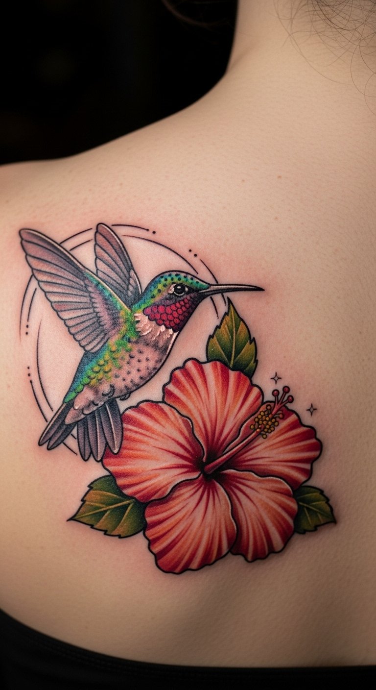 Hummingbird and hibiscus pair for joy. Place on your shoulder blade for flow. Mix free bird and flower drawings. Sketch both on paper together. Go with bright hues for life. Combine in a compact way to save money. Seek combo deal artists. Use stickers of each to test placement. They overlap easy. Add flight lines for motion. This merges them smoothly.