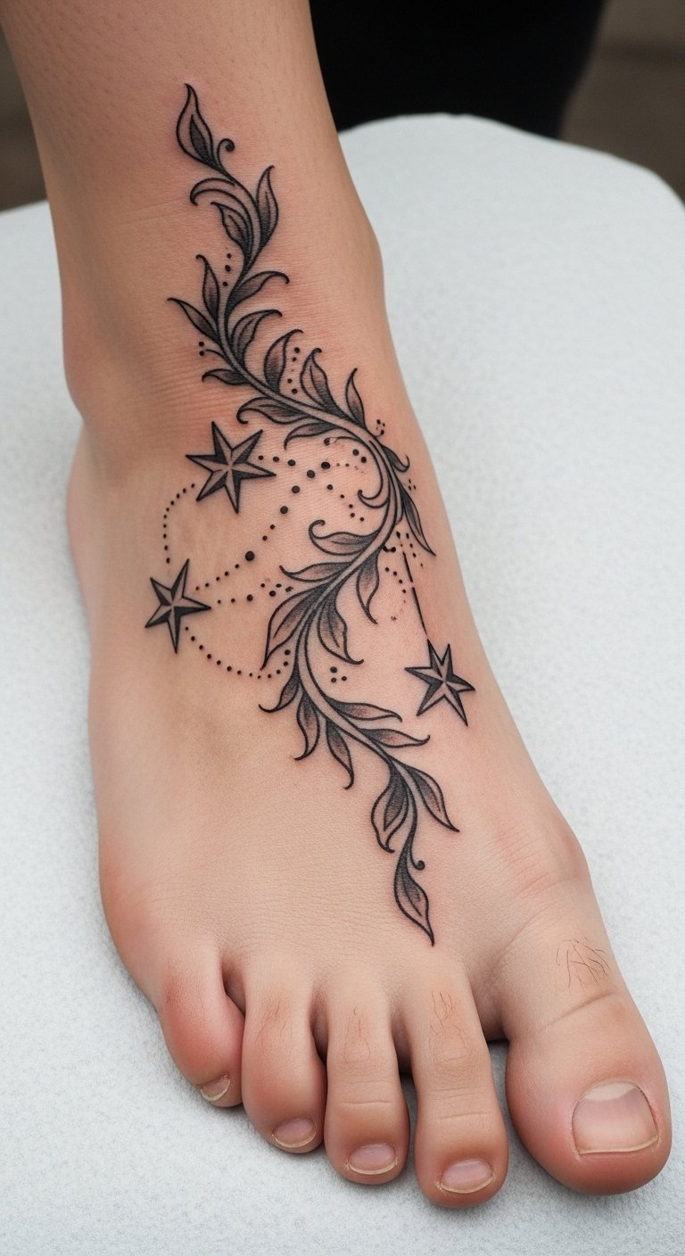 Maile with stars mixes peace and dreams. Wrap it on your foot for ground. Blend free vine and star shapes. Wrap around a star drawing first. Use night sky colors for magic. Limit the mix for budget. Look for celestial combos. Test with string and stars cutouts. Add glow lines for shine. This stars the design bright.