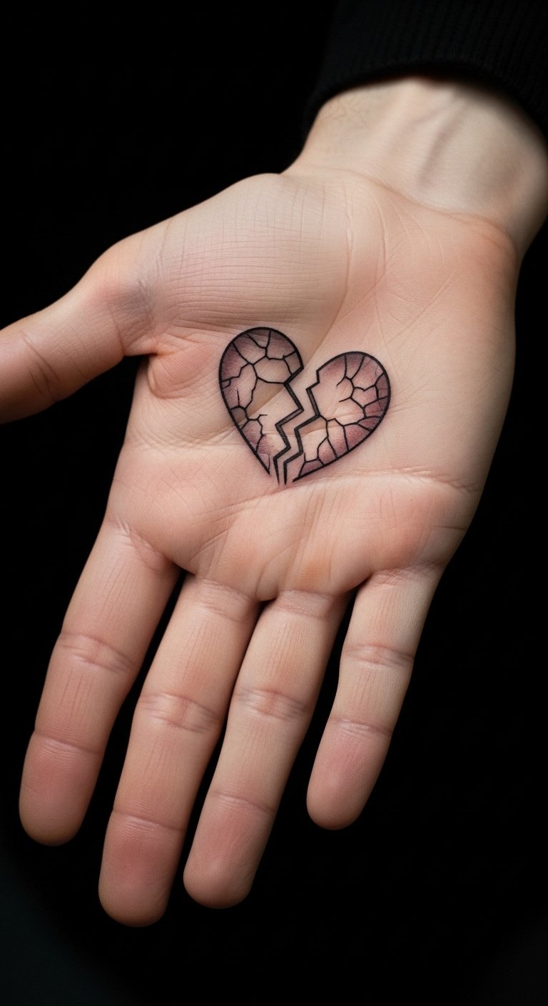 A broken heart hand design speaks to healing and moving on. It turns loss into a symbol of growth you carry daily. The cracks add a raw, honest feel. Jot down a basic version on paper with a marker. Use peel-off tattoos online for less than $3 to preview it. Put it on your palm for a personal reminder. Budget artists often charge $70 for this style. Make it small, around 1.5 inches, to keep it manageable. Hand tattoos require gentle care, so apply aloe vera from your fridge. For DIY practice, draw with a fine-tip pen and erase later. This tattoo helps process emotions, making you feel stronger over time. Choose a spot that’s not too visible if you prefer privacy.