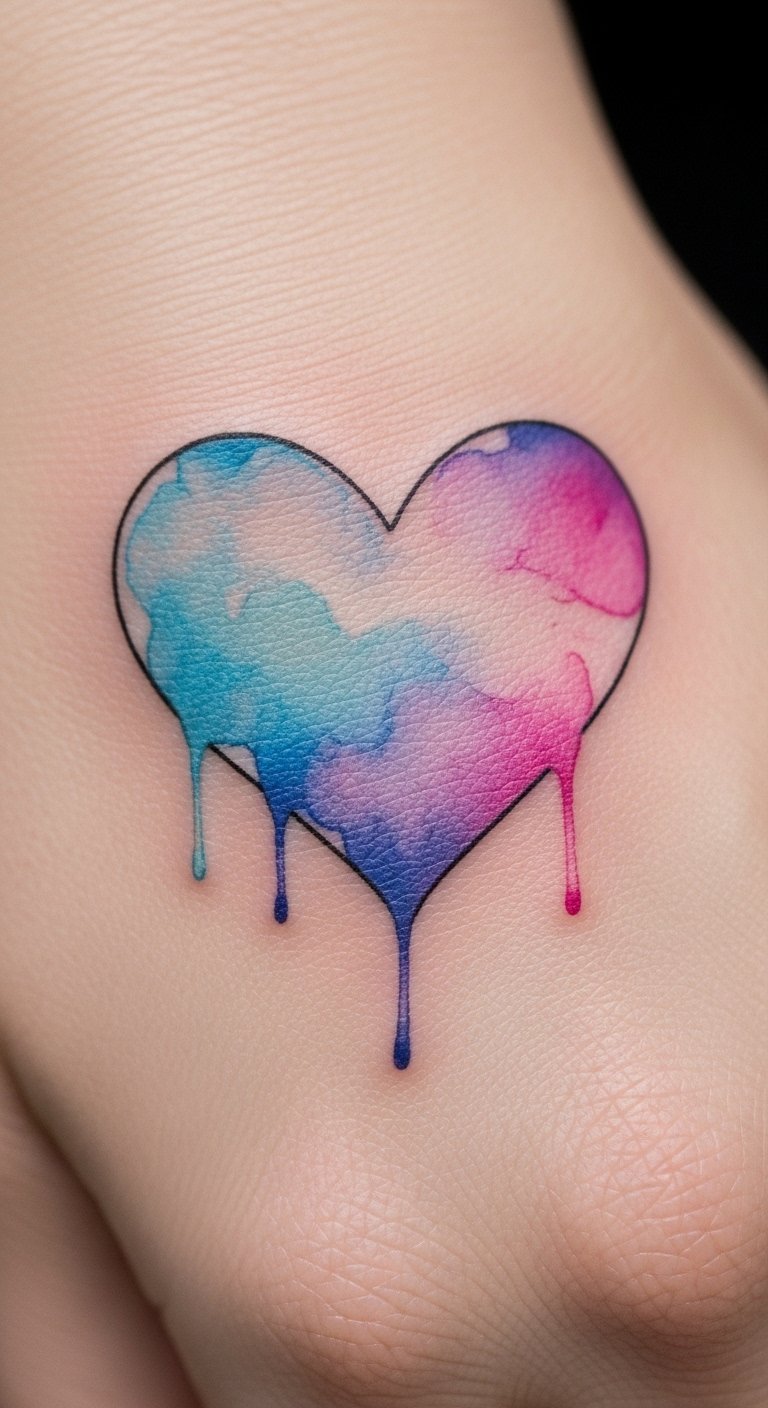 A watercolor heart on your hand gives a painted, artistic feel. It’s like carrying a soft brushstroke. Blend colors gently. Practice on canvas. Stick-ons with effects. Back of hand. Around $90. Keep fluid. Moisturize regularly. Paint with watercolors as DIY. It adds creativity.