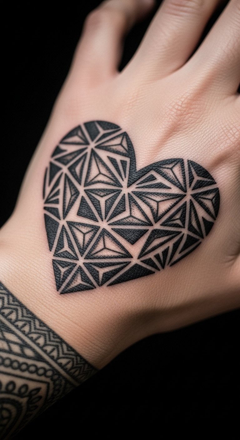 A geometric heart on your hand offers modern angles and stability. It’s shapes that lock in meaning. Plan with rulers. Stick-ons cheap. Palm placement. $55 fee. Size geometric. Basic lotion. Build with blocks as DIY. It feels structured.