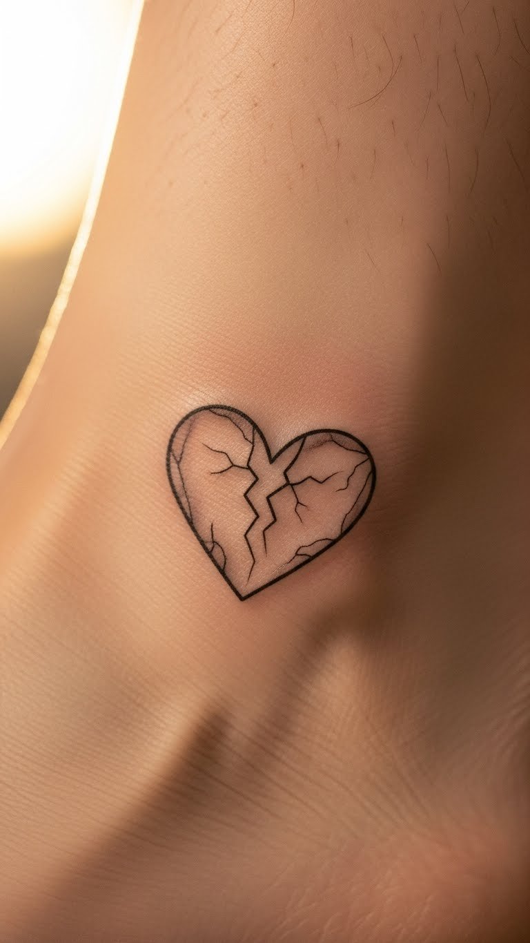 A cracked heart outline keeps things straightforward and elegant. Think of it as a gentle nod to tough times without overwhelming your skin. Start with a basic sketch on paper using a black pen to visualize the design. Find a local artist who charges under $100 for small pieces—check community forums for recommendations. Practice drawing your own version at home with free online templates. This design fits well on wrists or ankles for easy hiding or showing. Keep sessions short to avoid discomfort. Bold colors aren’t necessary; stick to black ink for a timeless look. Pair it with a meaningful date or symbol if you want more depth. Get inspired by watching tattoo videos on free platforms. This approach saves money and lets you personalize without hassle.