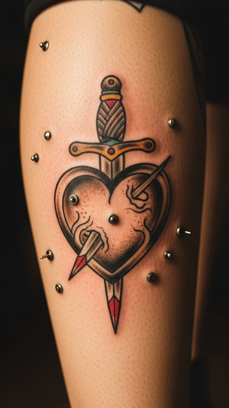 Vintage daggers through hearts stab old pains. It’s classic cuts. Sketch daggers quickly. Look for vintage pros at $140. Use markers for outlines. Calves carry the weight. Add wear effects. This stabs straight to the point.