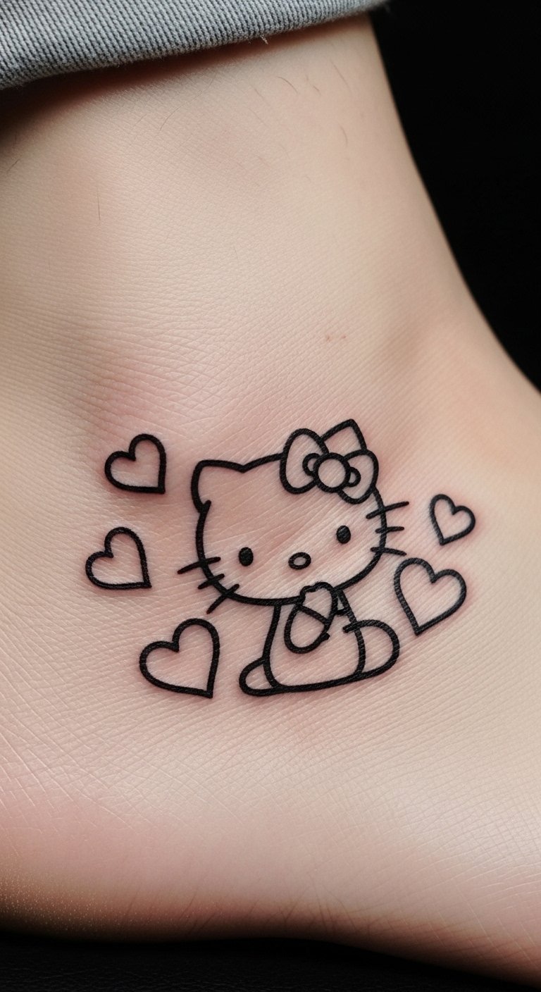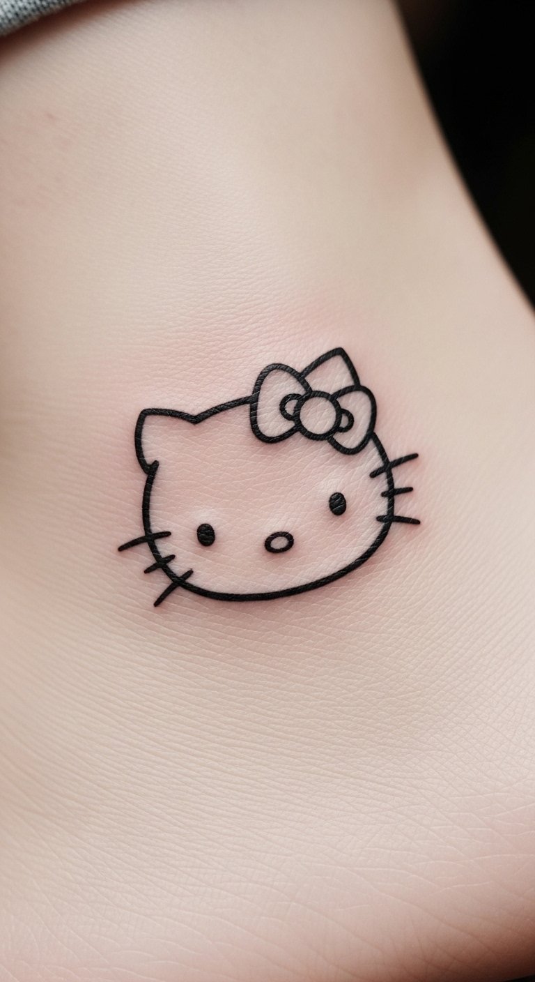 Put it low-key on your ankle for everyday charm. Hello Kitty on the ankle keeps the design small and sweet, maybe with a bow and stars. Trace it on your skin with a washable pen first to see how it fits. Check for flash tattoos at shops—often $40 or less. Use temporary stickers from online stores to test it out. Add a personal detail, like a initial nearby. Protect with bandages you have at home. This spot makes your tattoo discreet and easy to wear.