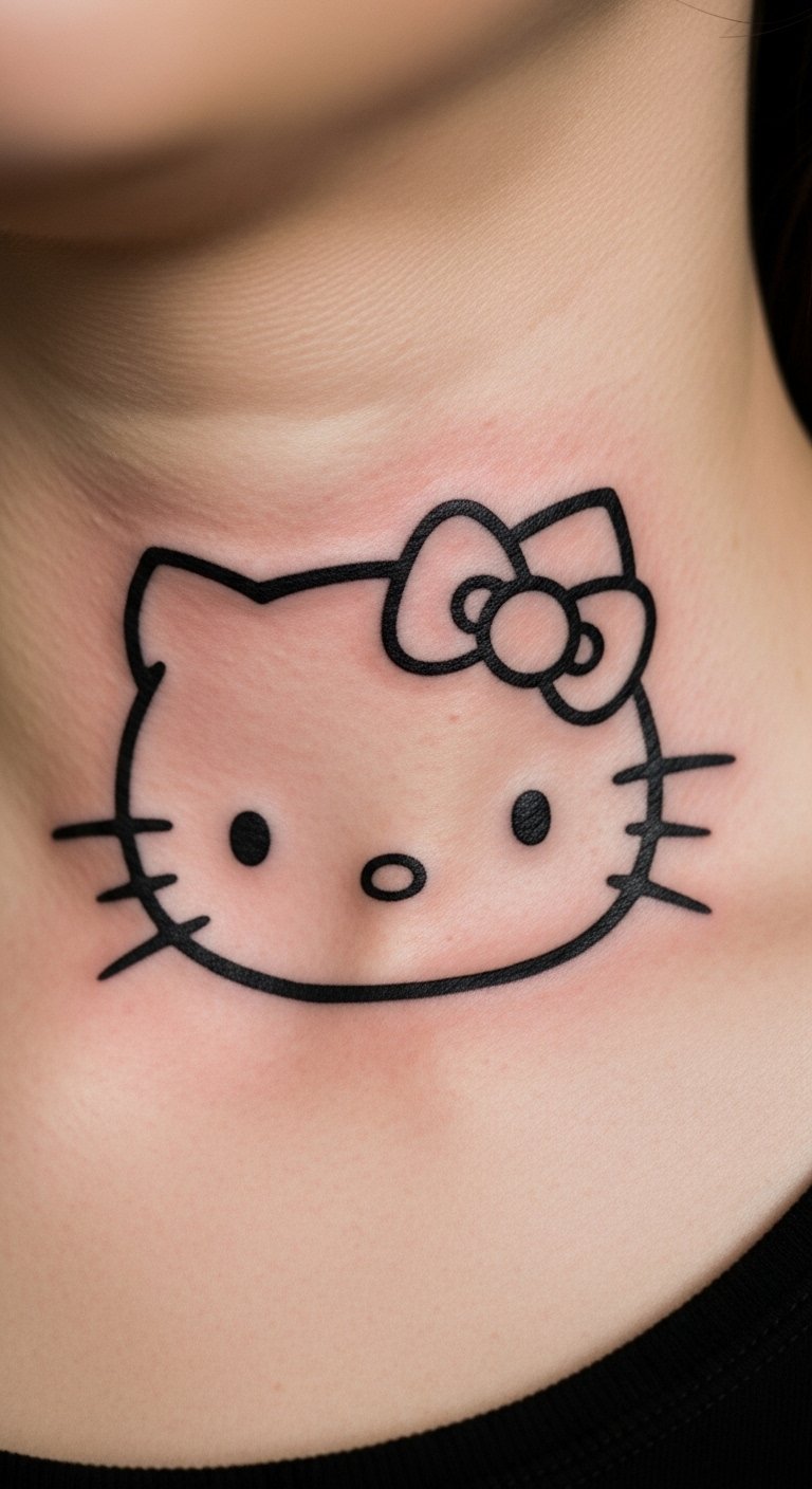 Focus on the face for purity. Hello Kitty face only keeps it to eyes and ears. Neck placement adds boldness. Trace faces on mirrors. Look for quick sessions at $50. Use face stickers. Include a smile line. Cover when needed. This captures essence.