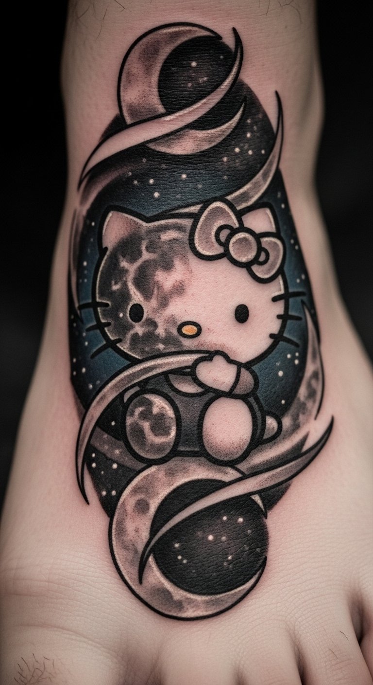 Pair with the moon for dreams. Hello Kitty and moon combines celestial elements. Foot spot keeps it hidden. Sketch moons on paper. Get deals for $70. Try moon decals. Personalize with phases. Wear socks for protection. This design inspires.