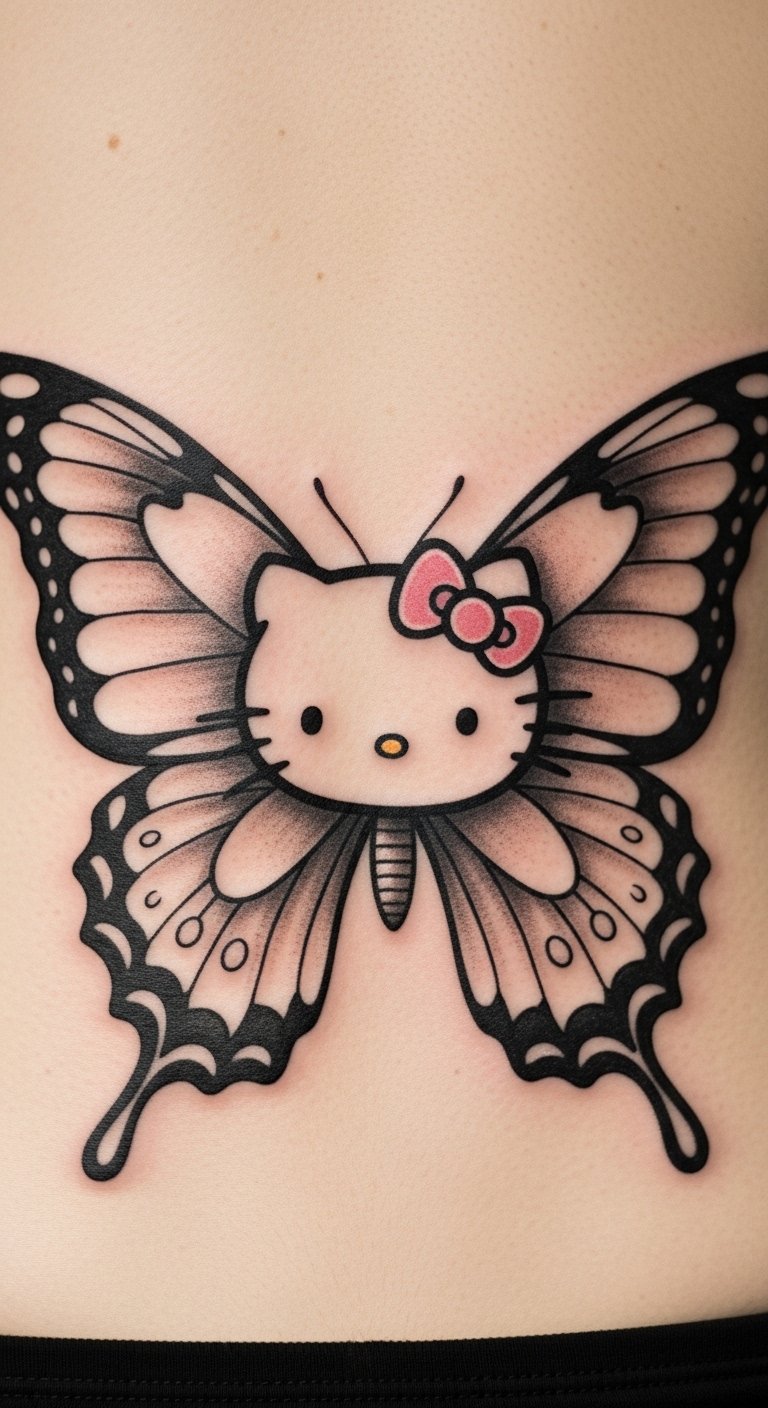 Add wings for freedom. Hello Kitty with butterfly includes fluttering shapes. Lower back for privacy. Draw butterflies on templates. Shop for $90. Use wing stamps. Customize the size. Use cream for healing. This design flies high.