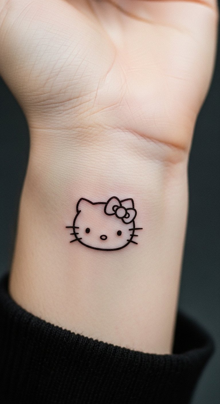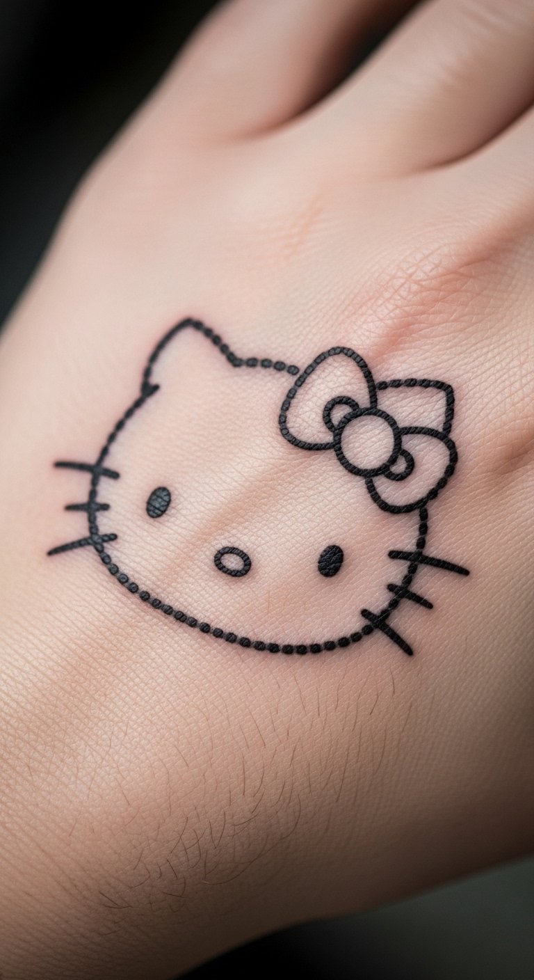 Think simple lines for a tattoo that says a lot with less. A minimalist Hello Kitty outline keeps things basic—just the face and a bow in black ink. This style works on small spots like your wrist or ankle. Start by sketching the design on paper with a fine-tip pen to get the proportions right. For a budget option, visit a local tattoo shop during a flash sale; many offer these for under $50. If you’re not ready to commit, try a temporary tattoo kit from the drugstore—apply it with water and wear it for a week. Add a personal twist, like a tiny star next to the bow, using free online templates. This approach lets you test the idea without hassle. Keep your skin moisturized afterward with basic lotion from home. You’ll love how it adds a subtle nod to your favorite character every day.
