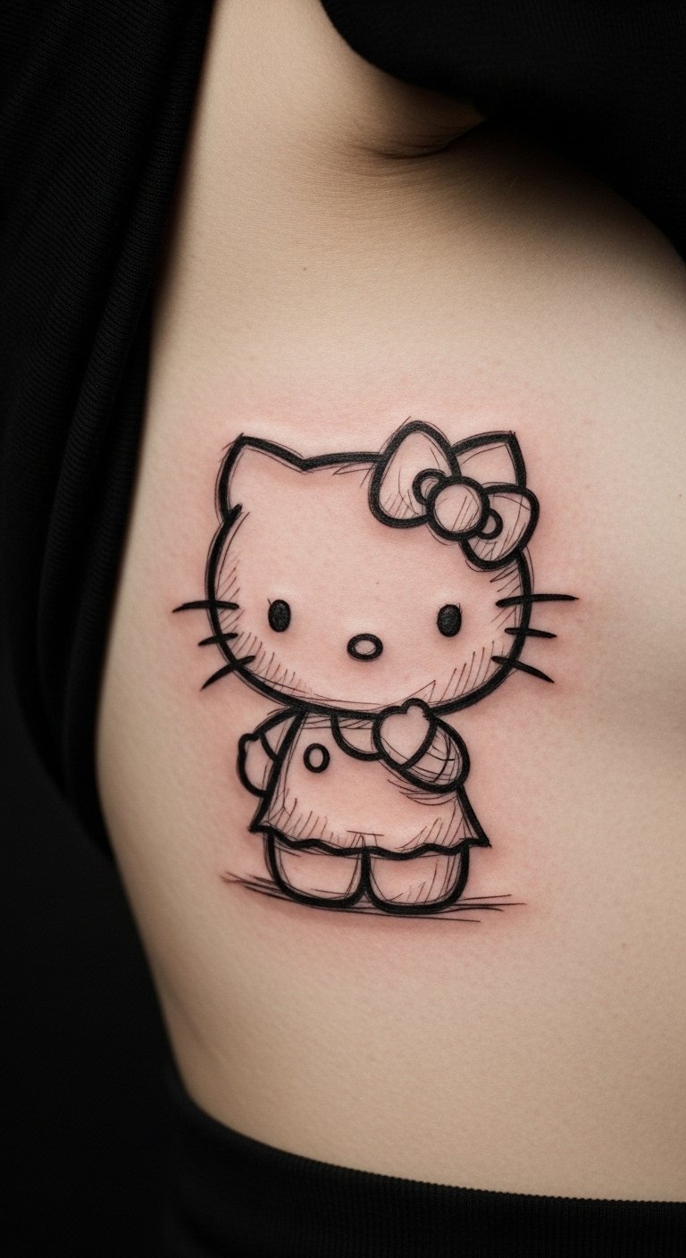 Make it like a quick draw. Hello Kitty sketch style uses loose lines. Rib for intimacy. Practice sketching daily. Find for $90. Use sketch pads. Add notes inside. Heal with rest. This design feels raw.