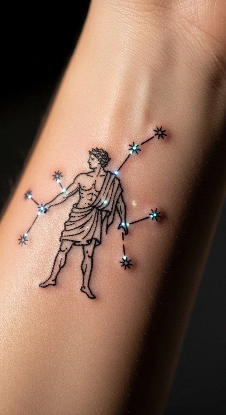 Stars connect to legends in this subtle design. Hercules appears as a constellation, perfect for astronomy fans. Dot it out on paper with a marker first—it’s free and easy. Small tattoos like this cost $60-150. Wear it on your wrist for daily visibility. Add your favorite stars to make it unique. Plan with simple sketches to avoid extras. This keeps things budget-friendly. Test with a wash-off tattoo for pennies. Make it a meaningful, low-key choice.