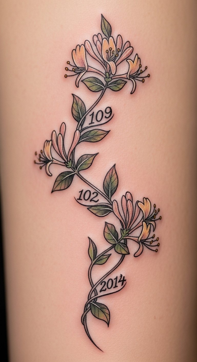 Honeysuckle stands for undying love. Get matching designs with your partner. Sketch ideas together on a budget notebook. Use free online tools to combine elements. Add small hearts for extra flair. Bold this: honeysuckle for couples. Place them on wrists for daily reminders. Visit a community tattoo event for lower prices. Try at-home stamps to preview. It strengthens your bond without big spends. Keep the design simple to avoid pain. Focus on shared memories. This tattoo works for anniversaries too. Draw it out with colored pencils first. Costs almost nothing. Make it a fun date activity. You’ll cherish the result for years.