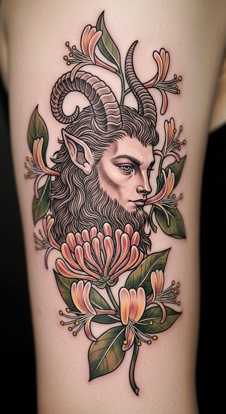 Fauns bring magic. Combine with blooms. Plan on paper creatively. Bold this: honeysuckle with fauns. Test with charcoal. Place on calf. Seek fantasy artists. It enchants. Keep fauns stylized. Link with vines. This design dreams. Sketch in notebooks. Fun and free. Make it epic.